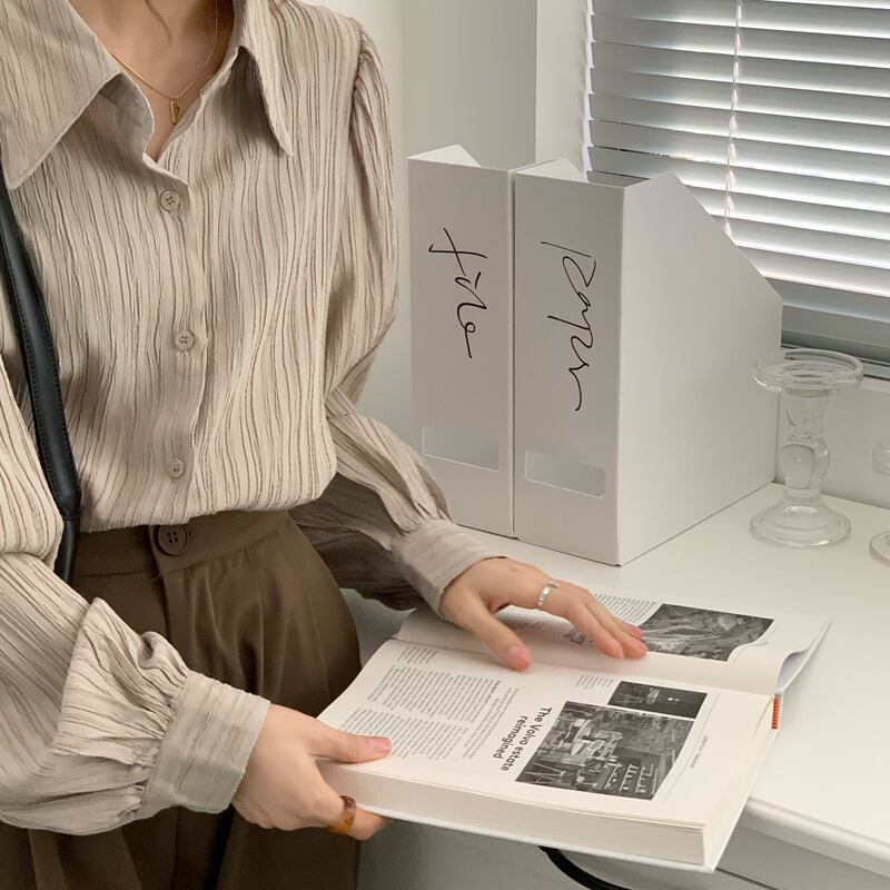 トップス レディース ブラウス シャツ 襟付き 長袖 ボタン 前開き パフスリーブ 大人可愛い きれいめ シンプル カジュアル 大人 上品 おしゃれ お洒落 大人女子 こなれ感 かっこいい 存在感 ラフ メンズライク クール 抜け感 S M L XL 白 ホワイト ベージュ 青 ブルー 春 秋 10代 20代 30代 40代 50代 60代 ママ オフィス ビジネス OL 通勤 学生 通学 お出かけ 女子会 休日 旅行 イベント 普段使い デイリー 着回し 重ね着 韓国 オルチャン