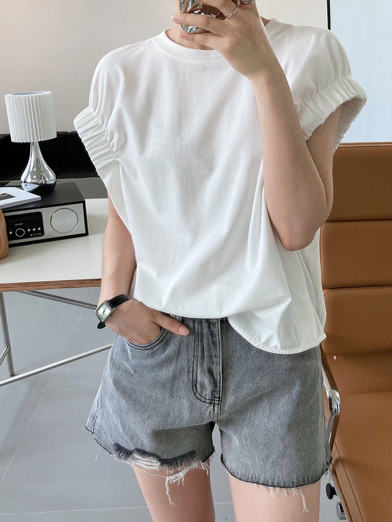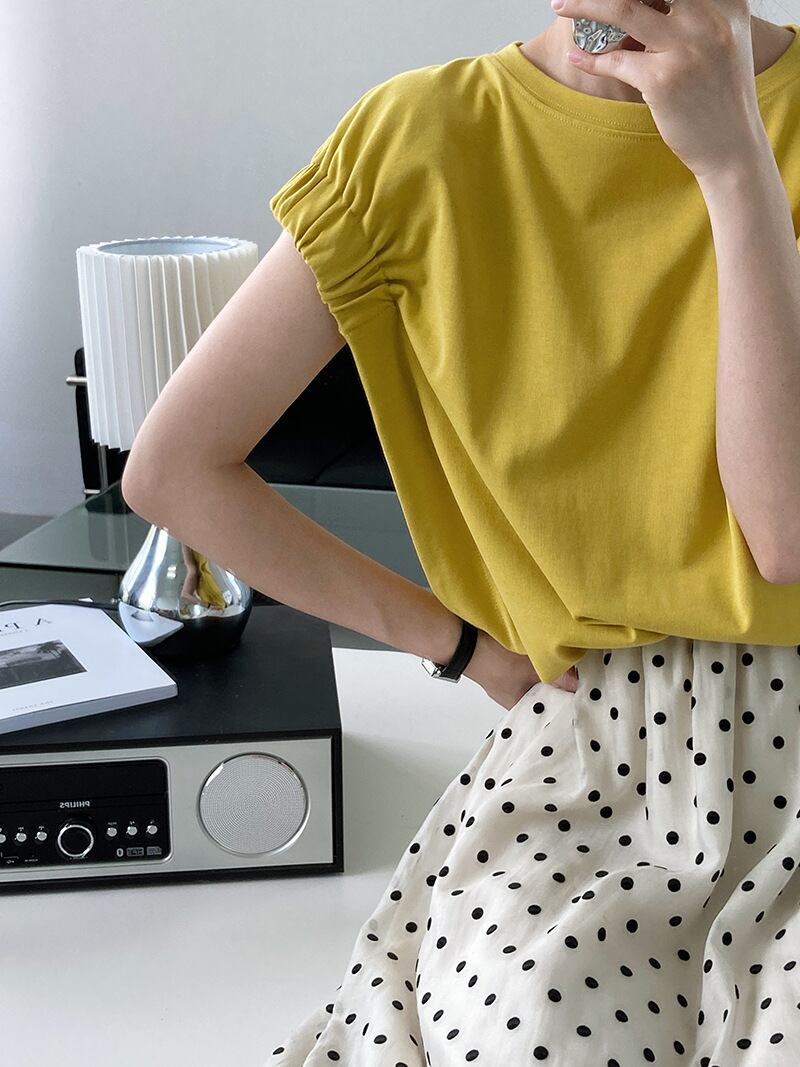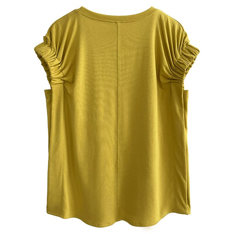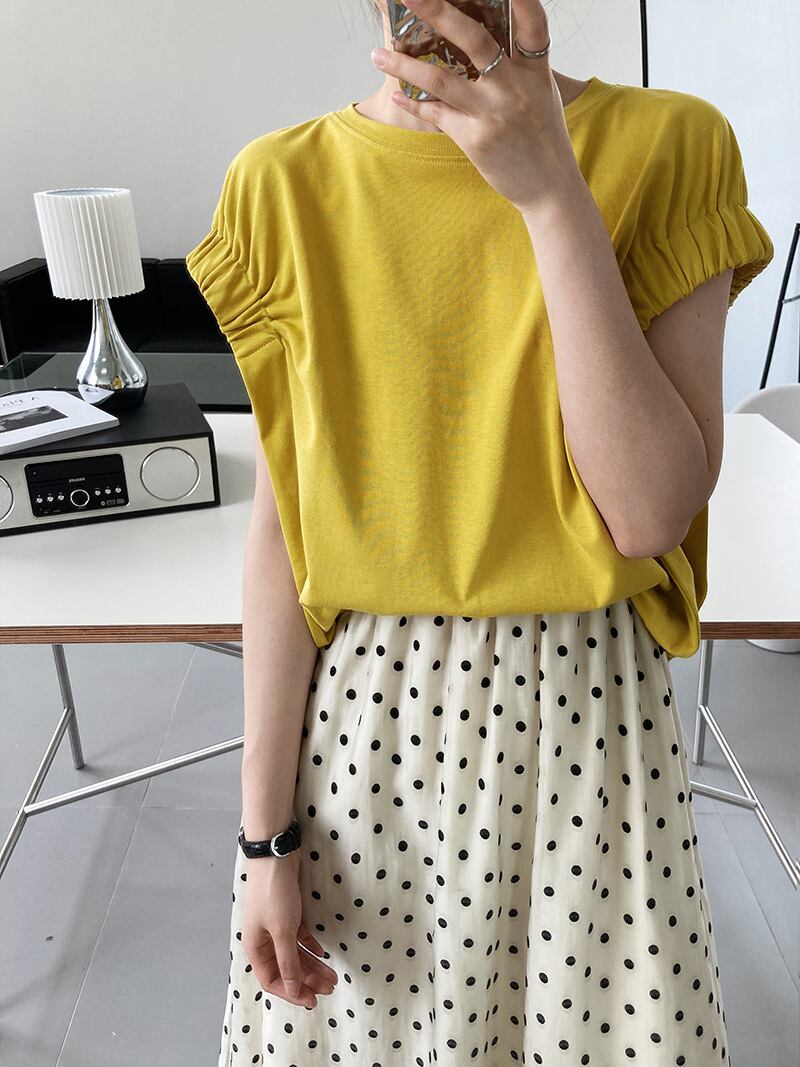 Tシャツの袖をギャザーでフレンチスリーブにしたような1枚◎