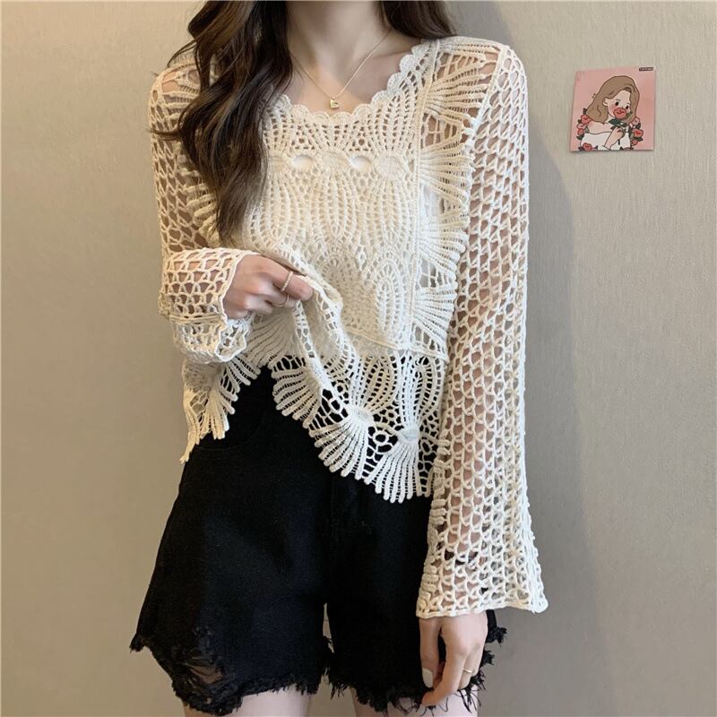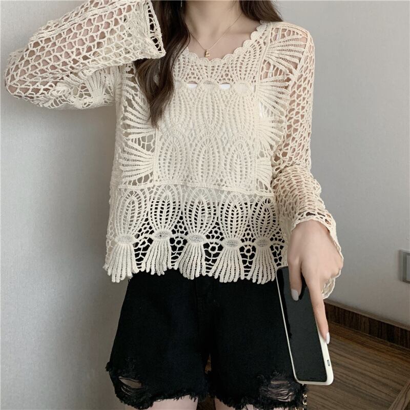 トップス レディース カットソー サマーニット ニットソー ラウンドネック 長袖 プルオーバー 透かし編み クロシェ編み 透け感 大人可愛い きれいめ 大人 上品 おしゃれ お洒落 かっこいい レトロ 大人女子 存在感 エレガント フェミニン セクシー 抜け感 こなれ感 ワンサイズ フリーサイズ 白 ホワイト アイボリー 春 夏 秋 10代 20代 30代 40代 50代 学生 通学 お出かけ 休日 旅行 イベント リゾート 海 プール 普段使い デイリー 着回し 韓国 オルチャン プレゼント ギフト