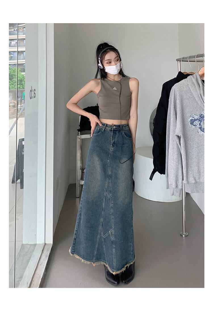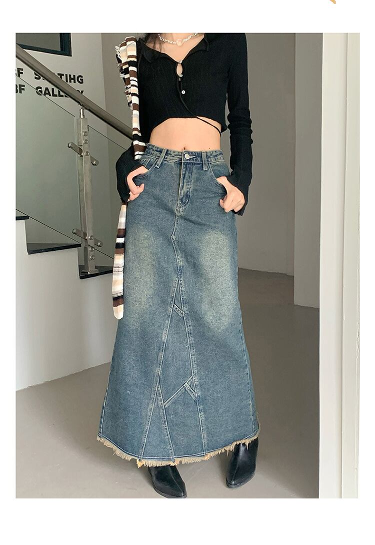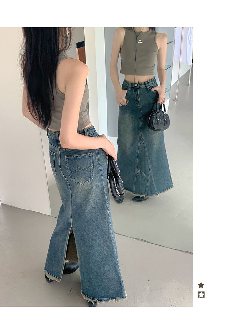 ボトムス レディース スカート デニムスカート ロング丈 セミフレア Aライン バックスリット ハイウエスト カジュアル 大人 おしゃれ お洒落 かっこいい レトロ 大人女子 こなれ感 ラフ クール 個性的 抜け感 存在感 XS S M L XL 無地 ブルーデニム ユーズド風 春 夏 秋 冬 オールシーズン シーズンレス 10代 20代 30代 40代 50代 ママ 学生 お出かけ 女子会 休日 旅行 イベント 普段使い デイリー 韓国 オルチャン