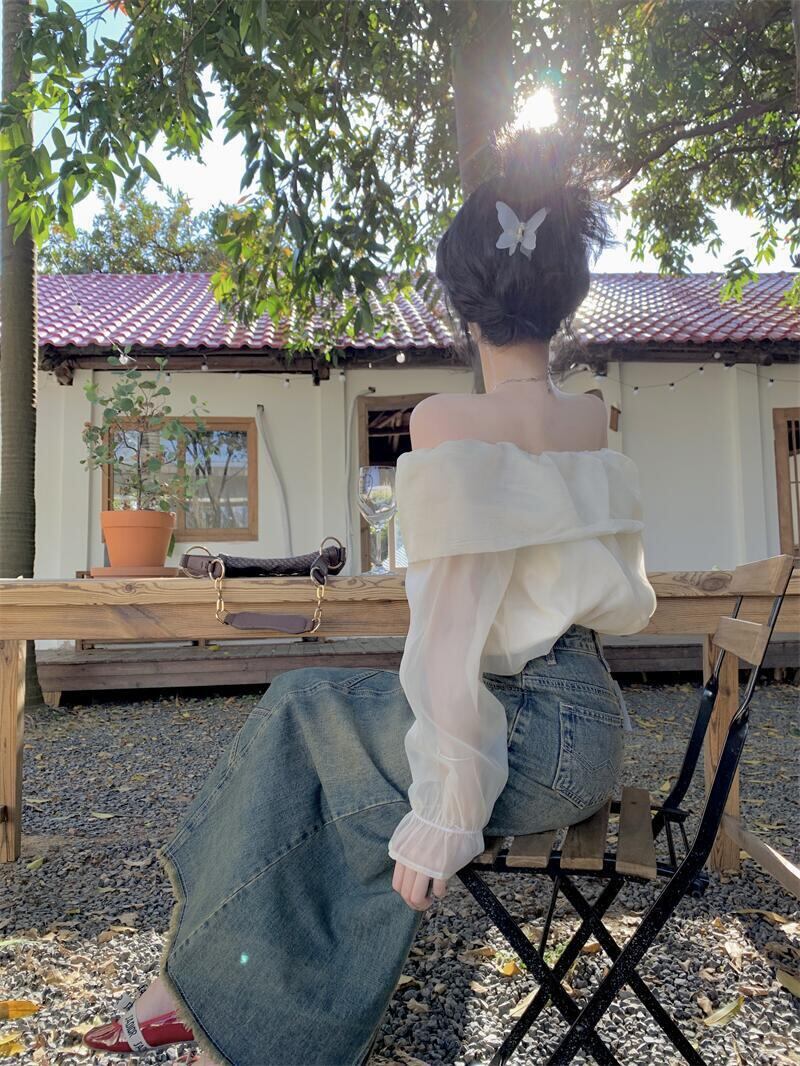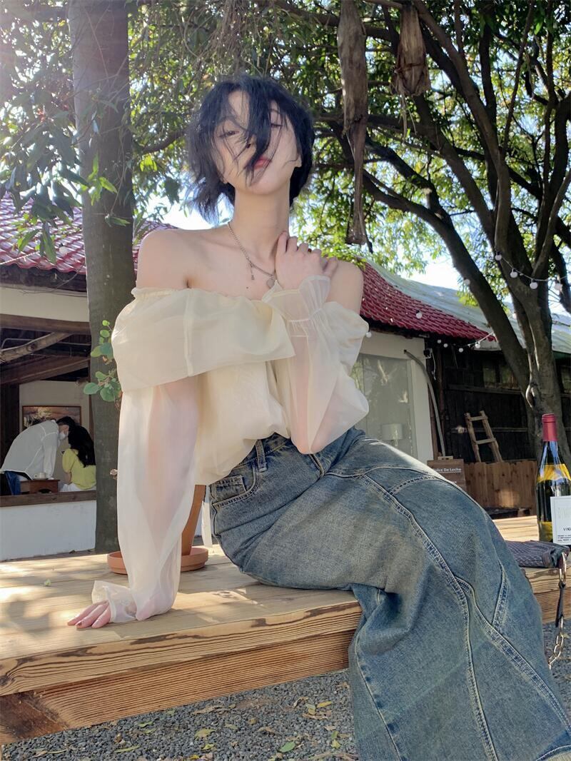 トップス レディース ブラウス カットソー 長袖 オフショルダー オフショル プルオーバー シフォン 透け感 シアー 大人可愛い シンプル 大人 おしゃれ お洒落 大人女子 セクシー こなれ感 抜け感 存在感 S M L XL 白 アイボリー 無地 春 夏 秋 10代 20代 30代 40代 デート お出かけ 女子会 休日 旅行 イベント リゾート 普段使い デイリー 韓国 オルチャン モテ プレゼント ギフト