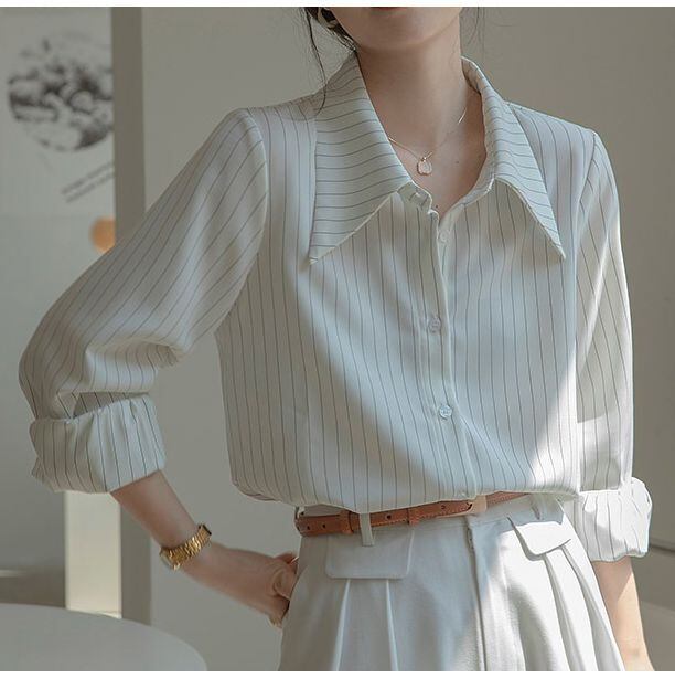 トップス レディース シャツ ブラウス 長袖 襟付き ボタン 前開き 白シャツ 大人可愛い きれいめ シンプル 大人 上品 おしゃれ お洒落 かっこいい 大人女子 メンズライク マニッシュ クール こなれ感 抜け感 S M L XL 2XL 大きいサイズ 白 ホワイト ストライプ 縞模様 春 夏 秋 冬 オールシーズン シーズンレス 10代 20代 30代 40代 50代 60代 オフィス ビジネス OL 通勤 学生 通学 お出かけ 女子会 休日 旅行 普段使い デイリー 韓国 オルチャン 着回し 重ね着