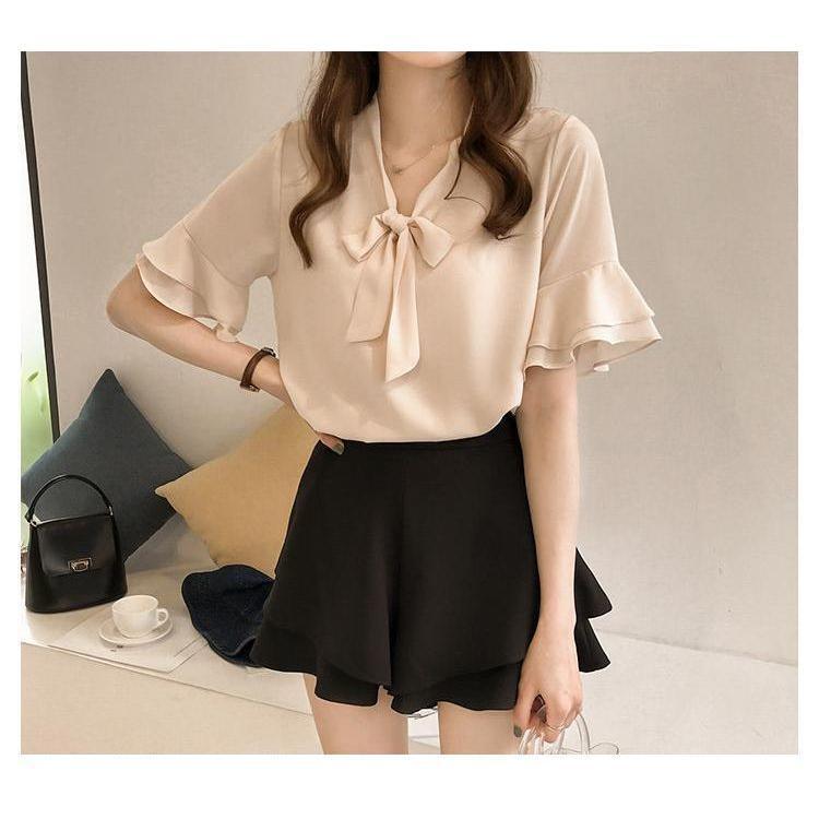 トップス レディース シャツ ボウタイブラウス シフォンブラウス 半袖 フリル袖 Vネック プルオーバー 大人可愛い シンプル 大人 上品 おしゃれ お洒落 大人女子 レトロ かっこいい エレガント フェミニン 存在感 抜け感 こなれ感 M L XL 2XL 3XL 4XL 大きいサイズ 白 ホワイト アイボリー 赤 レッド 無地 春 夏 秋 10代 20代 30代 40代 50代 ビジネス オフィス OL 通勤 学生 通学 入学式 入園式 卒業式 卒園式 お出かけ 休日 旅行 定番 韓国 オルチャン