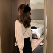 パフスリーブや胸元と襟のフリル使い、ブラックリボンなど