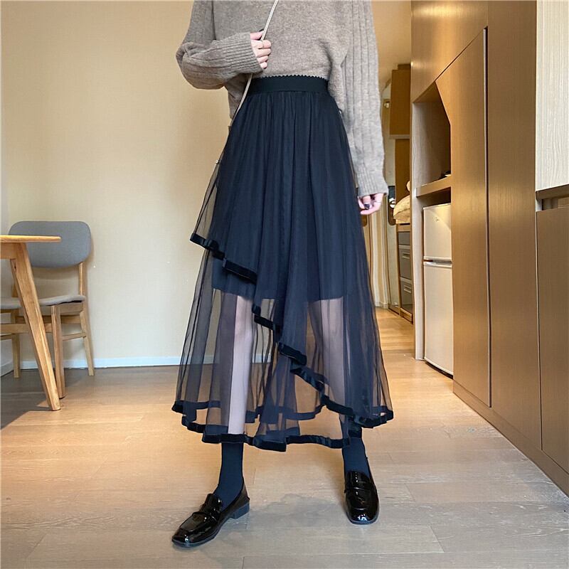 ボトムス レディース スカート アシメシアースカート ミモレ丈 アシンメトリー 2way フリル 透け感 大人可愛い おしゃれ お洒落 かっこいい 大人女子 こなれ感 クール セクシー 個性的 抜け感 存在感 ワンサイズ フリーサイズ 無地 黒 ブラック アイボリー 白 春 夏 秋 10代 20代 30代 40代 50代 デート お出かけ 女子会 休日 旅行 イベント 美脚 脚長 モテ 韓国 オルチャン プレゼント ギフト