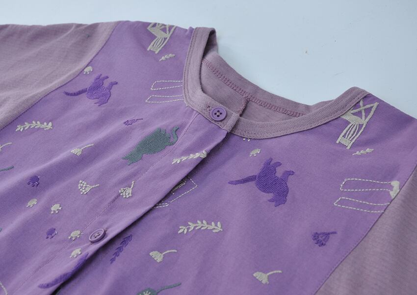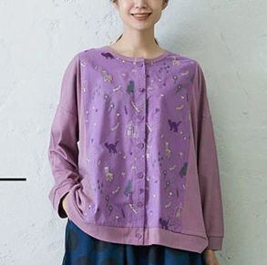 トップス レディース カーディガン 羽織り カットソー プルオーバー 長袖 クルーネック ラウンドネック 前開き ボタン ポケット 刺繍 ゆったり ルーズ シンプル カジュアル 大人 おしゃれ お洒落 かわいい 大人可愛い 大人女子 こなれ感 ラフ 抜け感 存在感 キュート ラブリー ワンサイズ フリーサイズ ラベンダー 紫 藤色 猫イラスト ねこ ネコ にゃんこ 10代 20代 30代 40代 50代 60代 ママ 学生 通学 休日 イベント 旅行 お泊り 公園デビュー アウトドア 普段使い デイリー