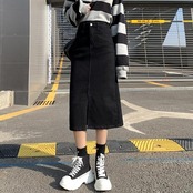 ボトムス レディース デニムスカート ミモレ丈 フロントスリット ストレート ナロースカート 大人可愛い シンプル カジュアル 大人 おしゃれ お洒落 かっこいい 大人女子 こなれ感 クール 抜け感 存在感 S M L XL 2XL 無地 黒 ブラックデニム 春 夏 秋 冬 オールシーズン シーズンレス 10代 20代 30代 40代 50代 通学 学生 デート お出かけ 女子会 休日 旅行 イベント 美脚 脚長 モテ 韓国 オルチャン 普段使い デイリー 着まわし 韓国 オルチャン