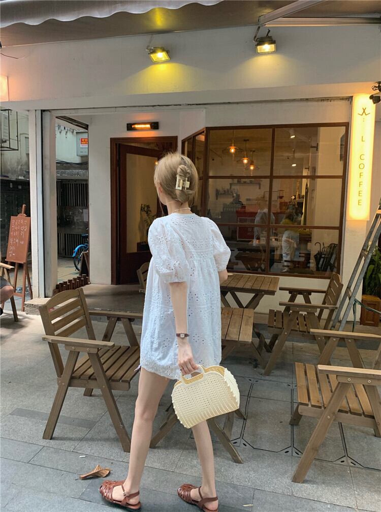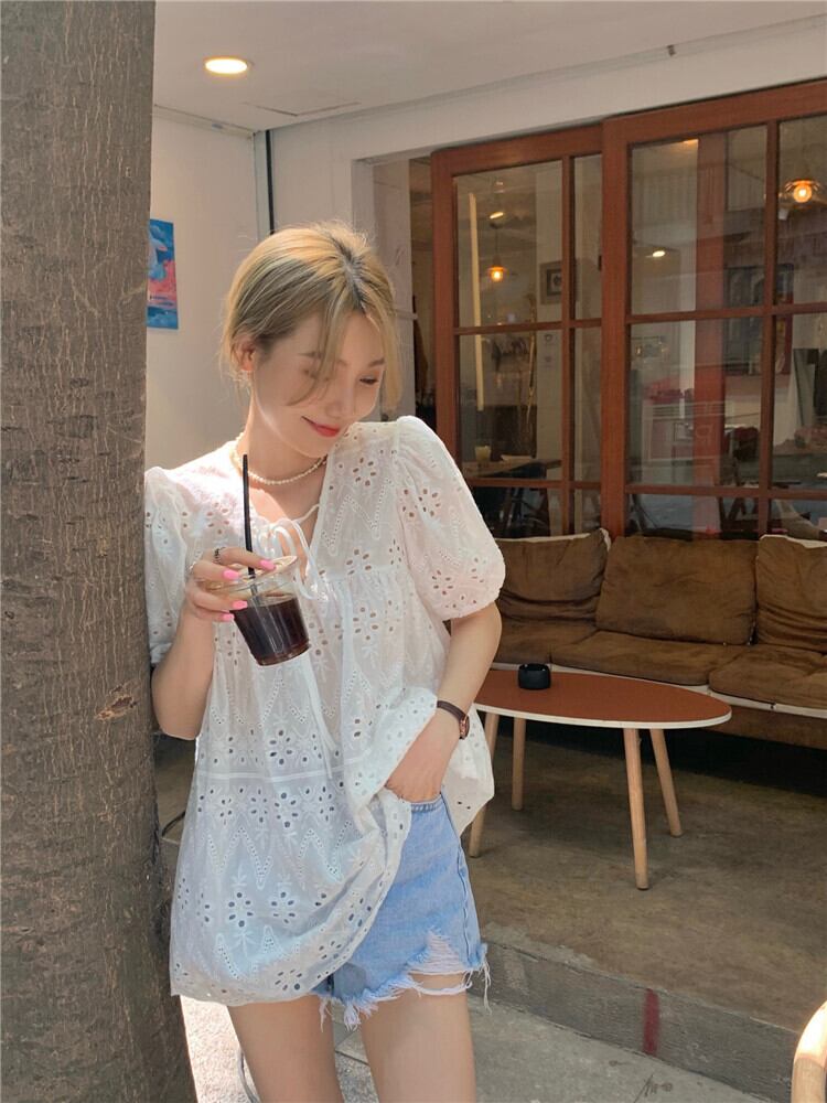 トップス レディース ブラウス カットソー プルオーバー Vネック 半袖 パフスリーブ パンチングレース ティアード ギャザー かわいい 大人可愛い カジュアル おしゃれ お洒落 存在感 ガーリー キュート こなれ感 ラフ 抜け感 ルーズ S M L 白 ホワイト 春 夏 秋 10代 20代 30代 40代 通学 学生 お出かけ 休日 旅行 イベント アウトドア 普段使い デイリー 韓国 オルチャン 楽ちん リラックス 公園デビュー リゾート 海 プール プレゼント ギフト 定番 モテ