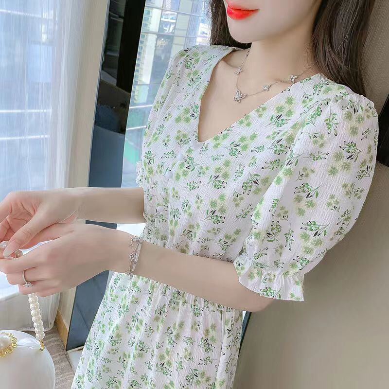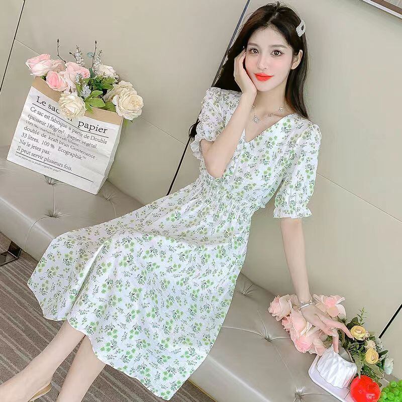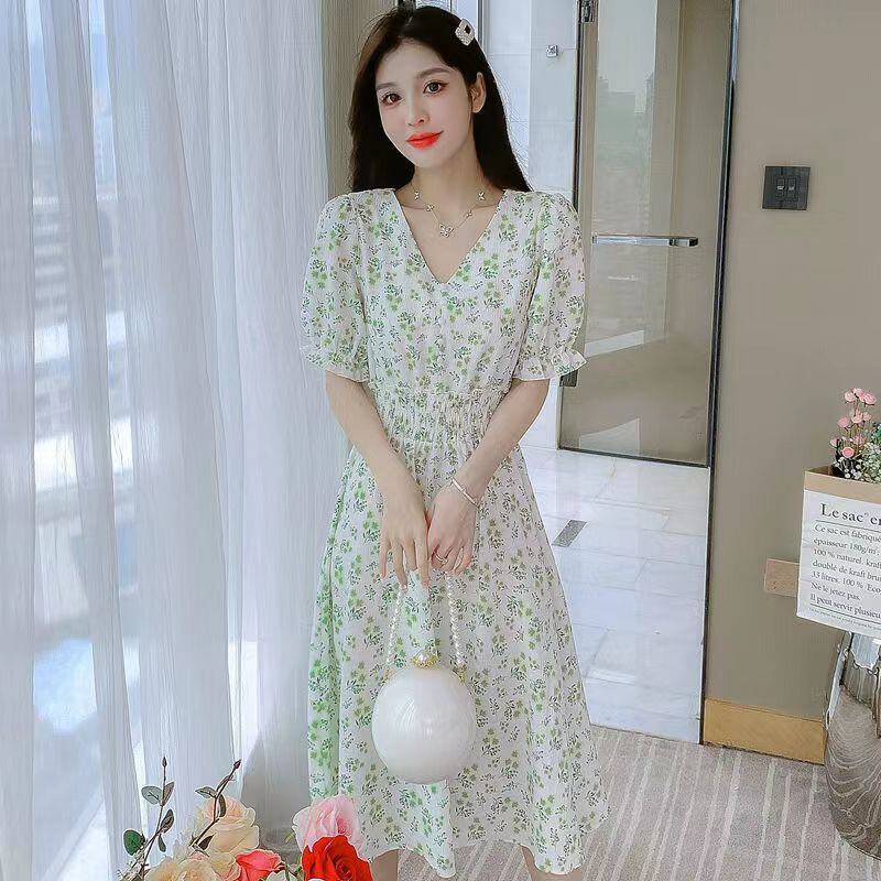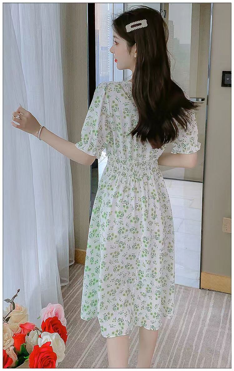 ワンピース レディース 膝丈 ひざ丈 膝下丈 Aライン フレア 襟なし パフスリーブ 半袖 Vネック ギャザー シャーリング ウエストマーク かわいい 大人可愛い おしゃれ お洒落 ガーリー キュート フェミニン エレガント 上品 清楚 清純 存在感 S M L XL 2XL 大きいサイズ 白 ホワイト 緑 グリーン 黄色 イエロー 小花柄 フラワー ボタニカル柄 春 夏 秋 10代 20代 30代 40代 学生 デート お出かけ 女子会 旅行 イベント 美脚 脚長 モテ デイリー 普段使い 定番