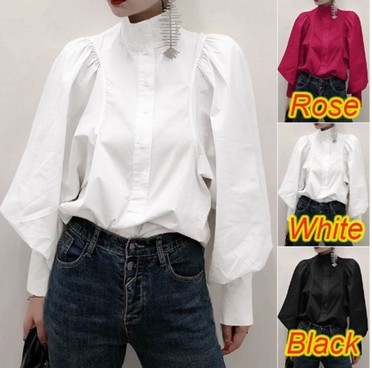 トップス レディース シャツ ブラウス 長袖 立襟 スタンドカラー ランタンスリーブ ボリューム袖 大人可愛い きれいめ 大人 上品 おしゃれ お洒落 存在感 かっこいい モード系 クール 大人女子 こなれ感 抜け感 S M L XL 2XL 3XL 大きいサイズ 白 ホワイト 黒 ブラック ローズピンク 無地 春 夏 秋 10代 20代 30代 40代 50代 お出かけ 旅行 女子会 休日 旅行 イベント 韓国 オルチャン 着回し ファッション コーデ スタイル