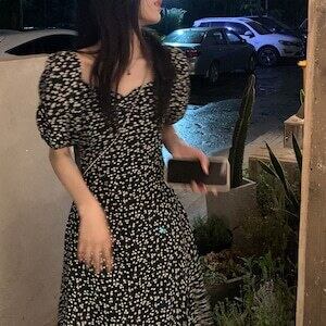 ワンピース レディース ミモレ丈 ハートネック 半袖 パフスリーブ スリット 大人可愛い きれいめ シンプル カジュアル 大人女子 おしゃれ お洒落 こなれ感 抜け感 存在感 S M 黒 ブラック モノトーン 小花柄 フラワー 春 夏 秋 10代 20代 30代 40代 50代 お出かけ 女子会 デート 旅行 イベント リゾート 定番 モテ 韓国 オルチャン デイリー 普段使い プレゼント ギフト
