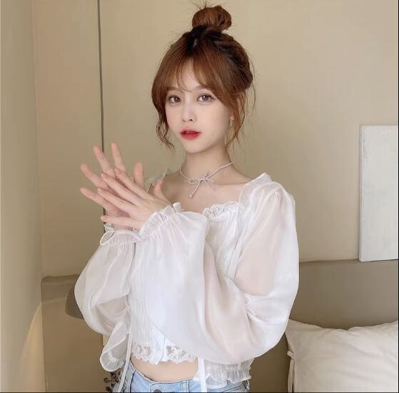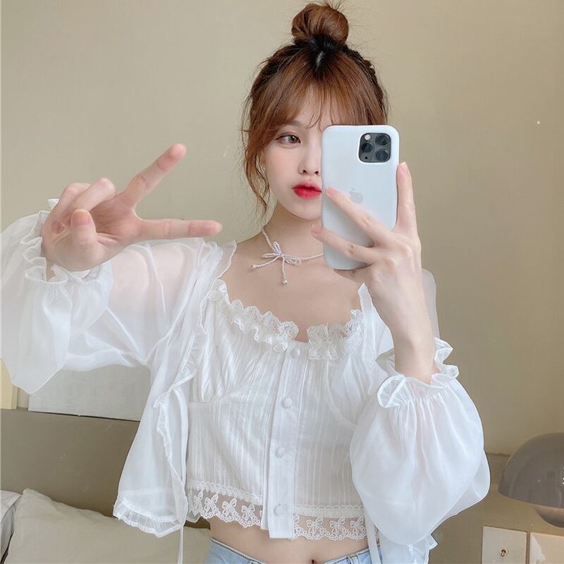 トップス レディース シフォンカーディガン 白シャツ ブラウス ボレロ 羽織り 長袖 前開き リボン フリル 透け感 クロップド丈 ショート丈 パフスリーブ ふんわり袖 大人可愛い シンプル きれいめ 大人 上品 おしゃれ お洒落 大人女子 エレガント フェミニン ガーリー こなれ感 存在感 抜け感 ワンサイズ フリーサイズ 白 ホワイト アイボリー 無地 冷房避け 冷房対策 日焼け防止 紫外線予防 ラッシュガード 日よけ 春 夏 秋 10代 20代 30代 40代 50代 60代 お出かけ デート 旅行