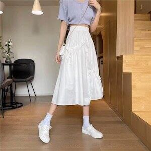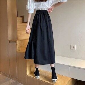 ボトムス レディース ギャザースカート ミモレ丈 膝下丈 ウエストゴム フレア Aライン 光沢感 アシンメトリー シャーリング リボン 大人可愛い シンプル きれいめ おしゃれ お洒落 かっこいい 大人女子 フェミニン エレガント シック とろみ感 存在感 S M L ホワイト 白 ブラック 黒 無地 春 夏 秋 10代 20代 30代 40代 通学 学生 デート お出かけ 女子会 休日 旅行 美脚 脚長 モテ 韓国 オルチャン 普段使い デイリー 着回し 定番 プレゼント ギフト