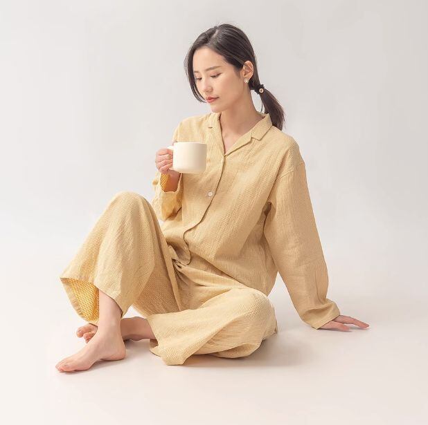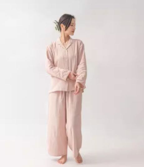 セットアップ レディース ルームウエア 部屋着 パジャマ 長袖開襟シャツ 長ズボン ロング丈パンツ ウエストゴム 2点セット 上下セット 大人可愛い シンプル カジュアル おしゃれ お洒落 楽ちん リラックス こなれ感 ラフ メンズライク スポーティー M L XL ストライプ柄 縦縞 無地 綿 コットン イエロー 黄色 ピンク グレー 灰色 春 夏 秋 10代 20代 30代 40代 50代 60代 男女兼用 旅行 リゾート リラックス 普段使い デイリー お揃い 双子 ユニセックス