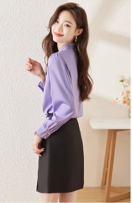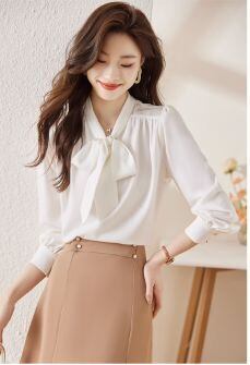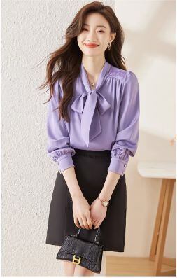 2色カラバリ、上品な長袖ボウタイブラウス。