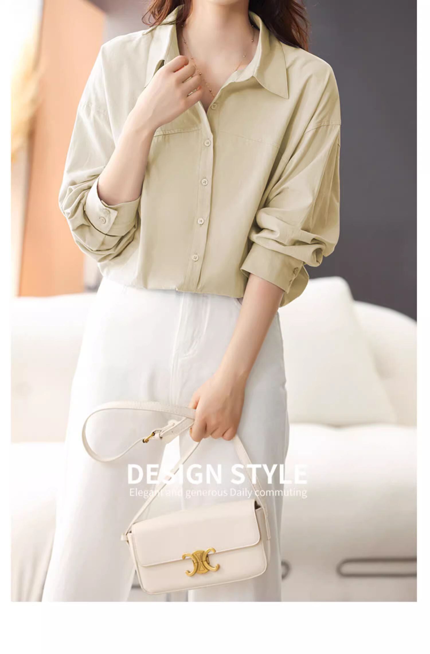 4色カラバリ、長袖開襟シャツブラウス。