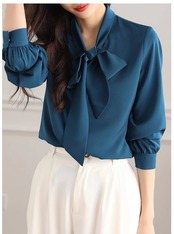 トップス レディース ボウタイブラウス プルオーバー シフォン 長袖 リボン 光沢感 大人可愛い きれいめ 大人 上品 おしゃれ お洒落 存在感 大人女子 エレガント フェミニン シック こなれ感 抜け感 とろみ感 M L XL 2XL 3XL 大きいサイズ ホワイト 白 ワインレッド 赤 ブルー 青 ブラック 黒 無地 春 夏 秋 10代 20代 30代 40代 50代 60代 オフィス ビジネス OL 通勤 通学 学生 休日 女子会 デート お出かけ 旅行 普段使い デイリー モテ 韓国