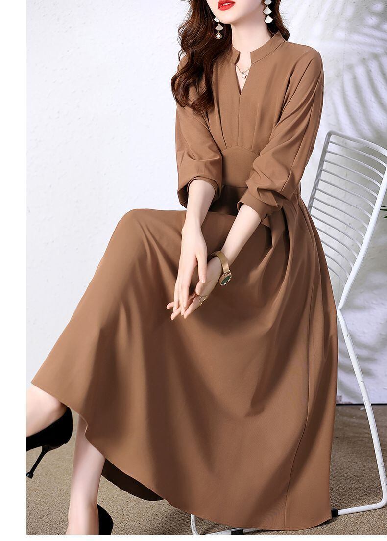 ワンピース レディース ロングワンピース ママスーツ スワンネック 長袖 Aライン フレア タック ウエストマーク 大人可愛い きれいめ 上品 おしゃれ お洒落 かっこいい レトロ 大人女子 フェミニン エレガント 清楚 存在感 抜け感 こなれ感 高見え M L XL 2XL 3XL ブラウン 茶色 カーキ 緑 ネイビー 紺 無地 春 夏 秋 10代 20代 30代 40代 50代 60代 フォーマル 入学式 入園式 卒業式 卒園式 結婚式 二次会 披露宴 お出かけ デート 女子会 旅行