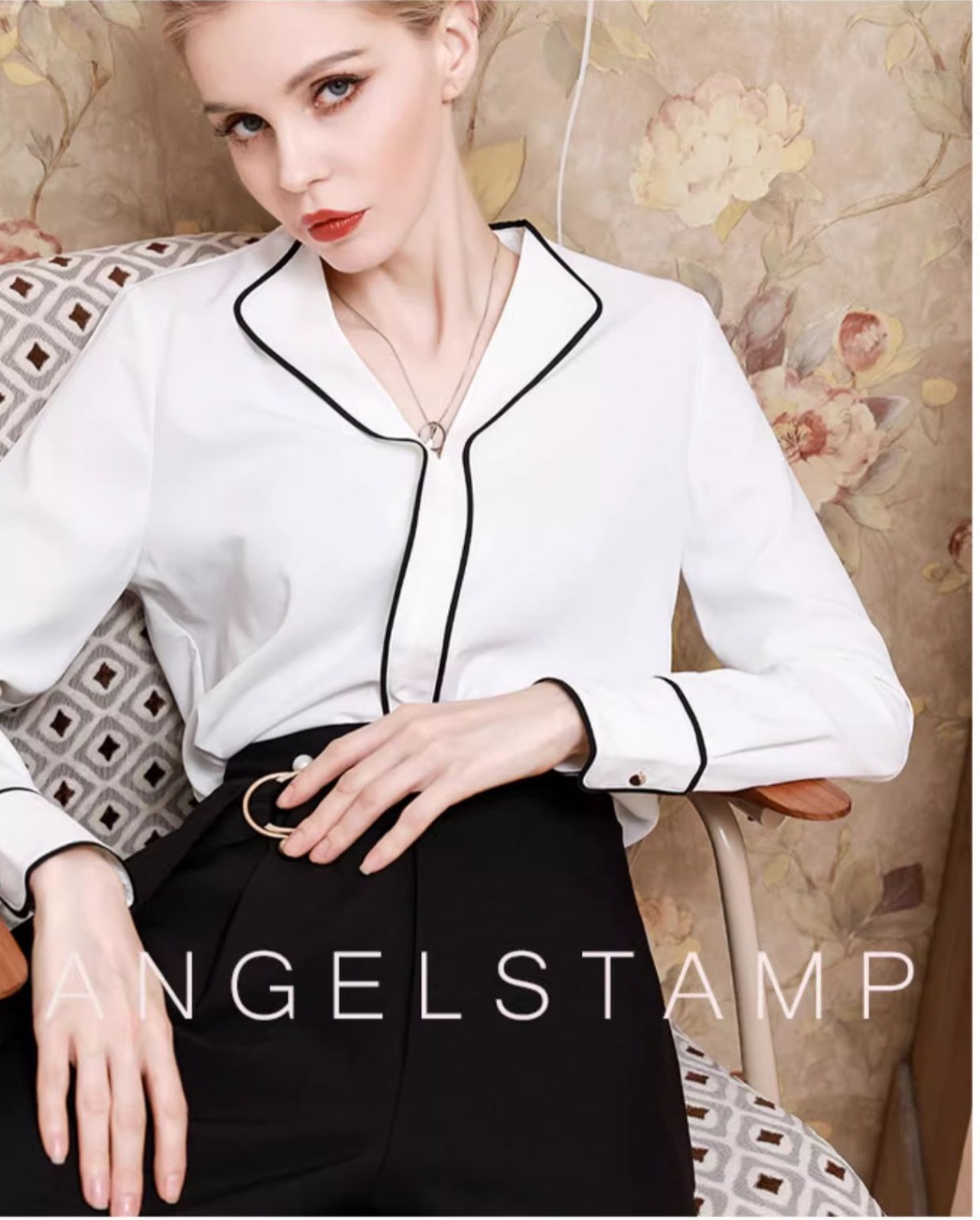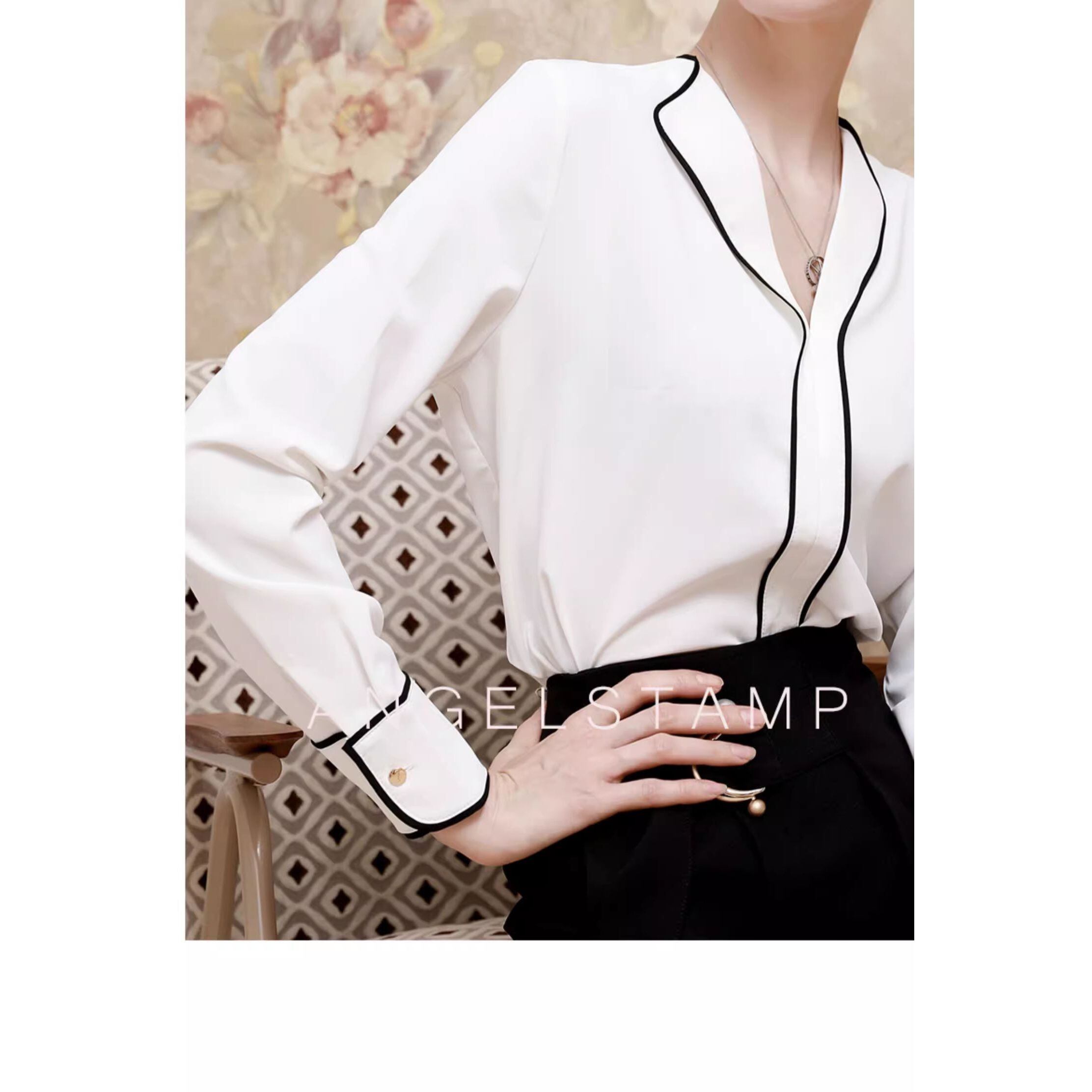 トップス レディース ブラウス プルオーバー 長袖 襟付き 大人可愛い きれいめ シンプル 大人 上品 おしゃれ お洒落 かっこいい レトロ 存在感 大人女子 シック こなれ感 抜け感 M L XL 2XL 大きいサイズ ホワイト 白 無地 バイカラー ブラックライン 春 夏 秋 10代 20代 30代 40代 50代 60代 オフィス ビジネス OL 通勤 通学 学生 休日 女子会 デート お出かけ 旅行 普段使い デイリー モテ 韓国 オルチャン ママ