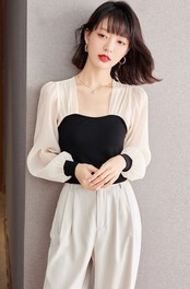 ドッキングシフォン長袖ブラウス。
