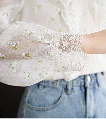 繊細なレースと同系色の花柄の透け感ある素材が大人女子にピッタリ◎
