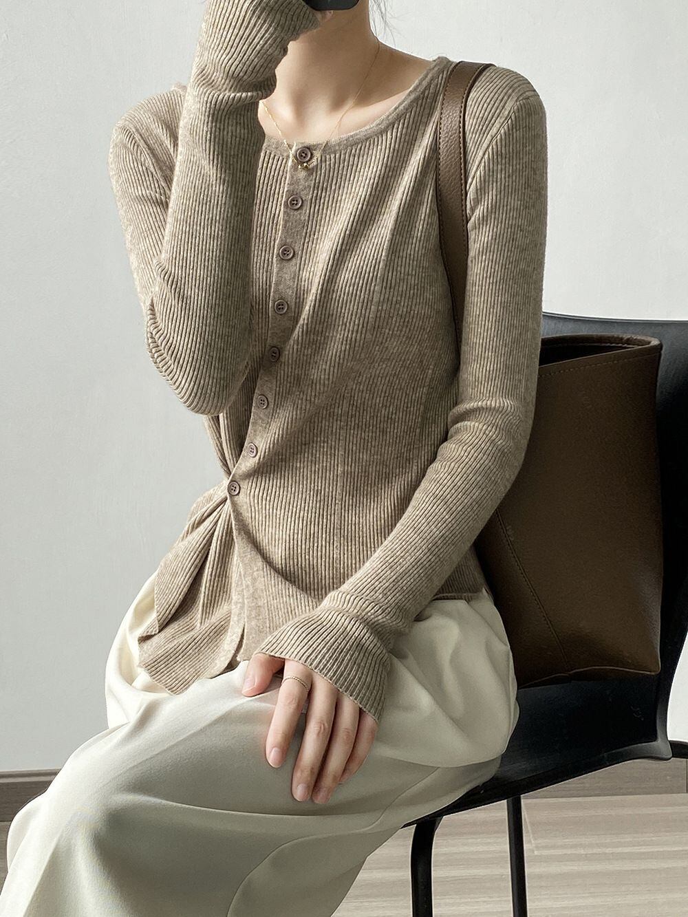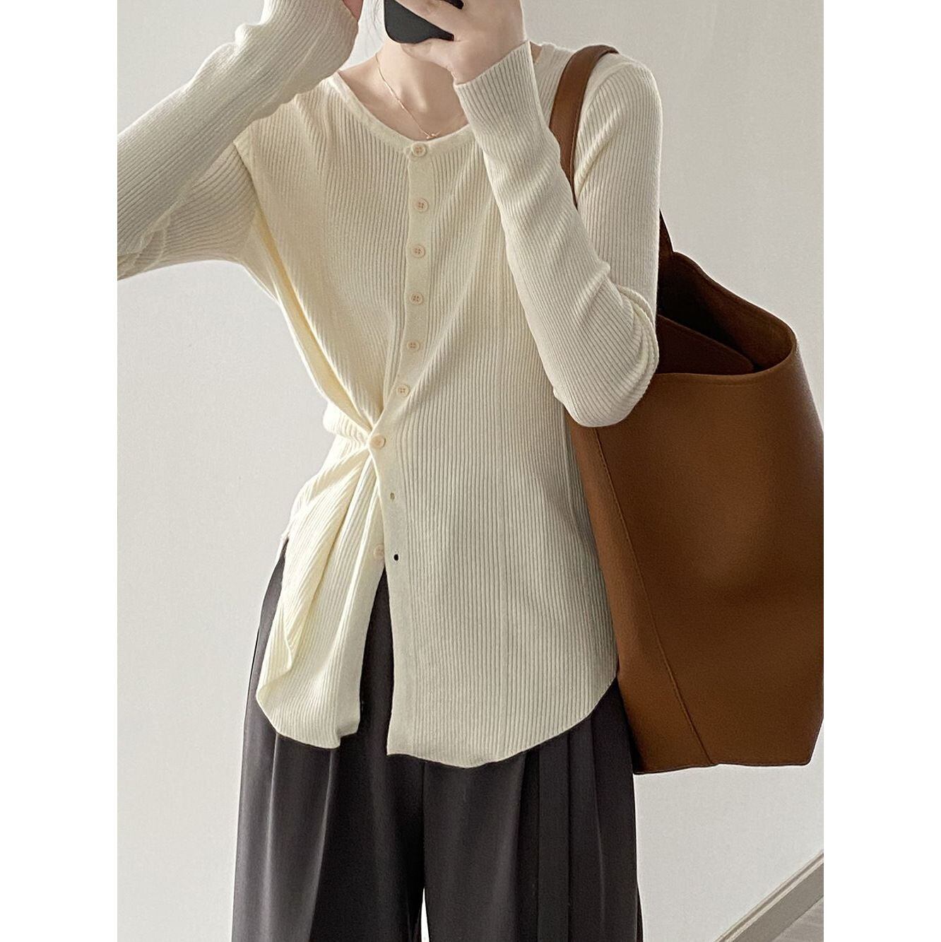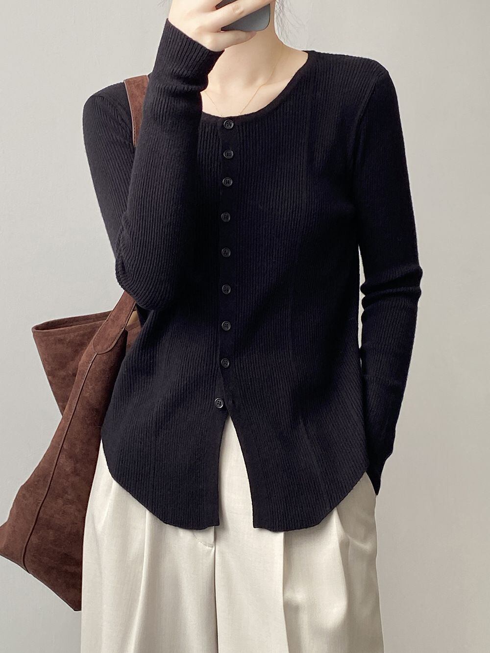 トップス レディース リブニットカーディガン ニットソー セーター プルオーバー ラウンドネック クルーネック 襟なし 長袖 ボタン 2way 大人可愛い きれいめ シンプル カジュアル ナチュラル おしゃれ お洒落 かっこいい 大人女子 こなれ感 抜け感 存在感 ワンサイズ フリーサイズ アイボリー 白 ブラウン 茶色 グリーン 緑 ベージュ ブラック 黒 春 秋 10代 20代 30代 40代 50代 オフィス ビジネス OL 通勤 通学 学生 公園デビュー アウトドア 旅行 普段使い デイリー