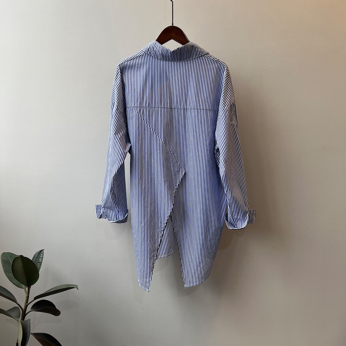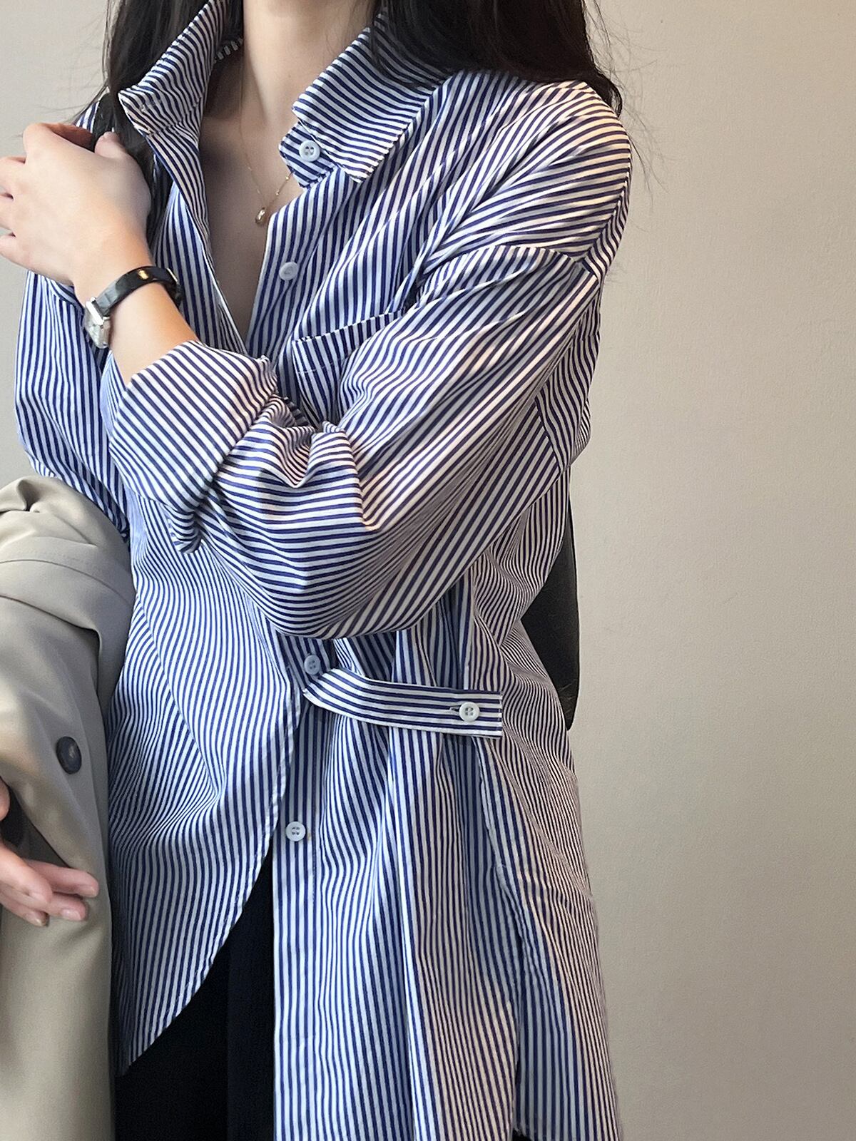 ストライプ柄の大きめシンプルシャツブラウス。