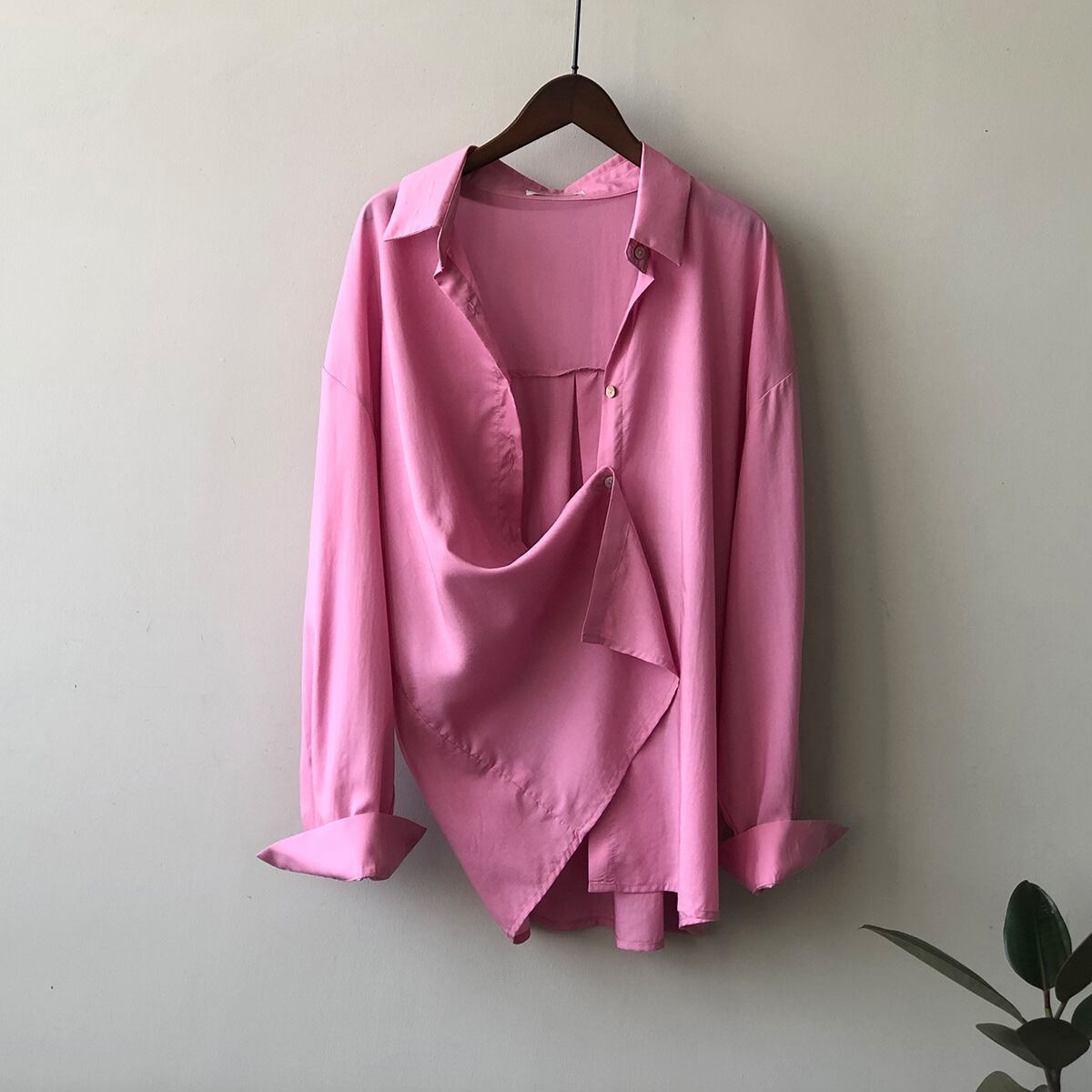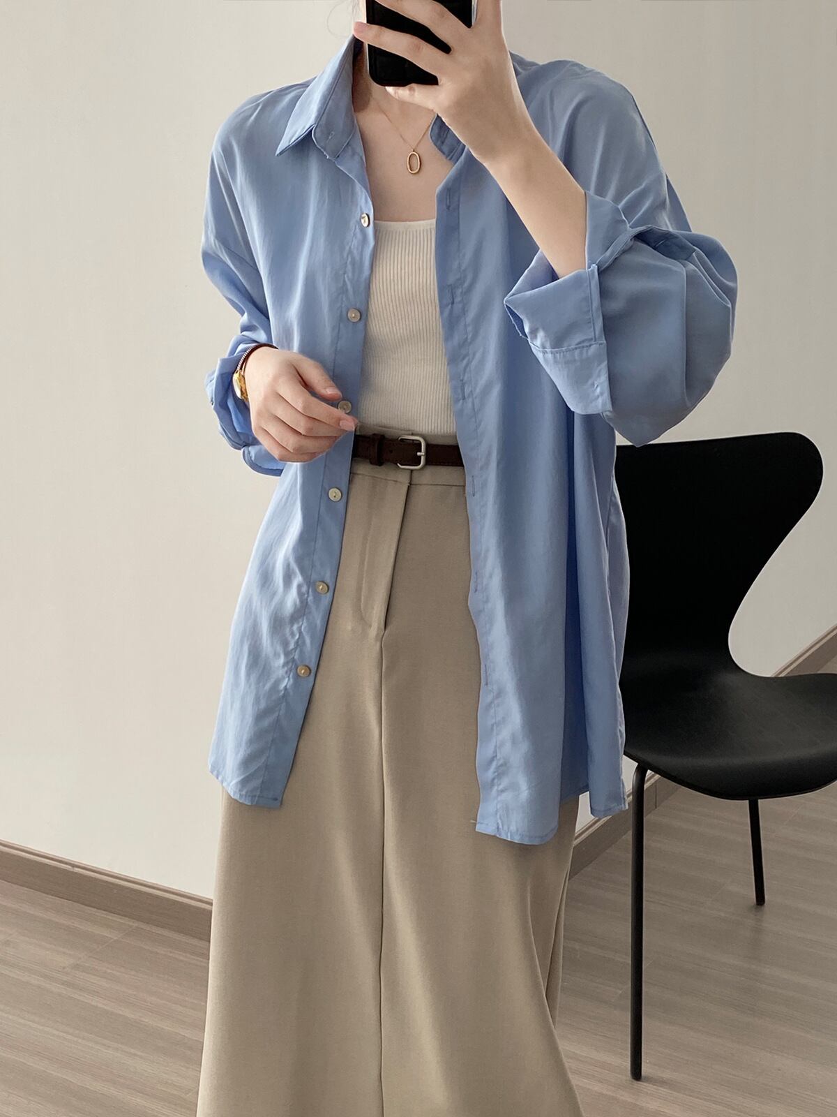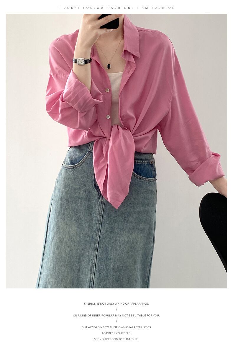 4色カラバリ、ゆったりシンプル長袖シャツブラウス。