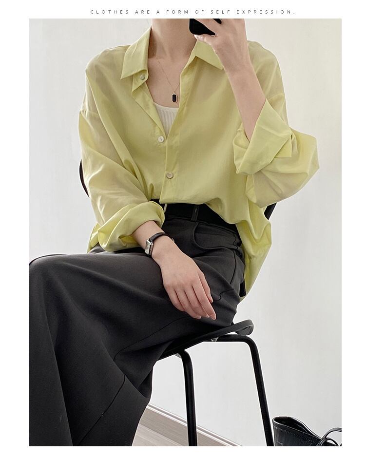 トップス レディース シャツブラウス ボタン ポケット 襟付き 長袖 ドロップショルダー 羽織り カーディガン 薄手 透け感 前開き ゆったり ルーズ 大人可愛い きれいめ シンプル ベーシック ナチュラル カジュアル 大人 上品 おしゃれ お洒落 かっこいい クール 存在感 大人女子 こなれ感 抜け感 冷房対策 日焼け対策 紫外線対策 M L ホワイト 白 イエロー 薄黄色 ピンク ブルー 水色 青 無地 春 夏 秋 10代 20代 30代 40代 50代 60代 オフィス OL 通勤 通学 学生