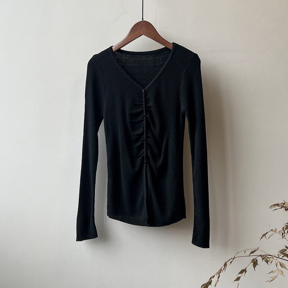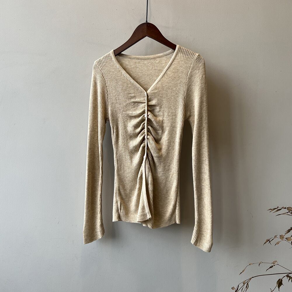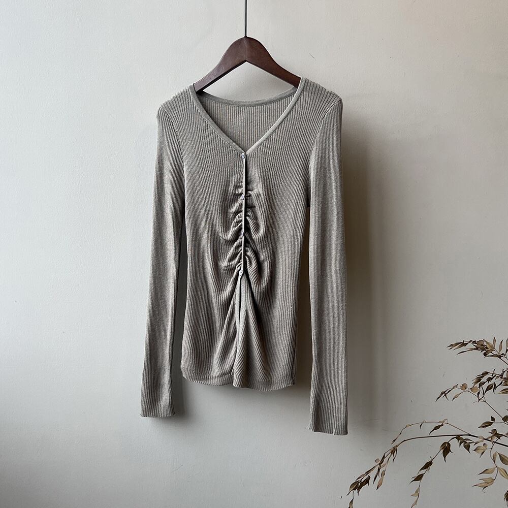 トップス レディース カットソー プルオーバー Vネック 襟なし 長袖 シャーリング ボタン 大人可愛い シンプル カジュアル ナチュラル おしゃれ お洒落 かっこいい 大人 上品 大人女子 こなれ感 抜け感 存在感 ワンサイズ フリーサイズ 白 アイボリー ベージュ ピンク グレー 灰色 ブラック 黒 春 秋 10代 20代 30代 40代 50代 学生 通学 お出かけ 休日 旅行 普段使い デイリー 韓国 オルチャン 着回し 重ね着 アウトドア 公園デビュー ファッション コーデ スタイル