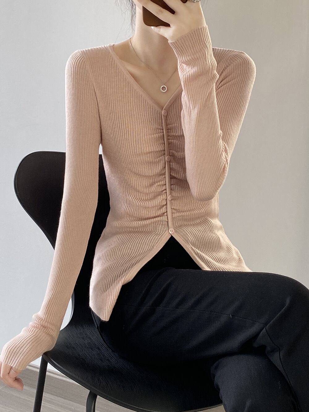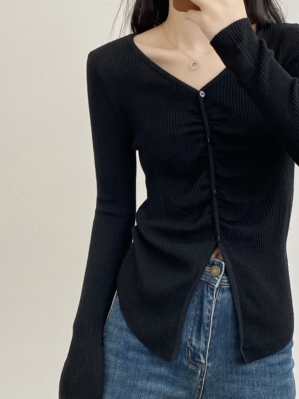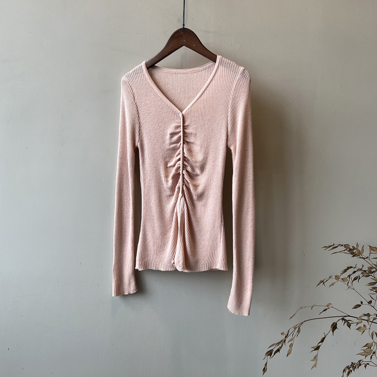トップス レディース カットソー プルオーバー Vネック 襟なし 長袖 シャーリング ボタン 大人可愛い シンプル カジュアル ナチュラル おしゃれ お洒落 かっこいい 大人 上品 大人女子 こなれ感 抜け感 存在感 ワンサイズ フリーサイズ 白 アイボリー ベージュ ピンク グレー 灰色 ブラック 黒 春 秋 10代 20代 30代 40代 50代 学生 通学 お出かけ 休日 旅行 普段使い デイリー 韓国 オルチャン 着回し 重ね着 アウトドア 公園デビュー ファッション コーデ スタイル