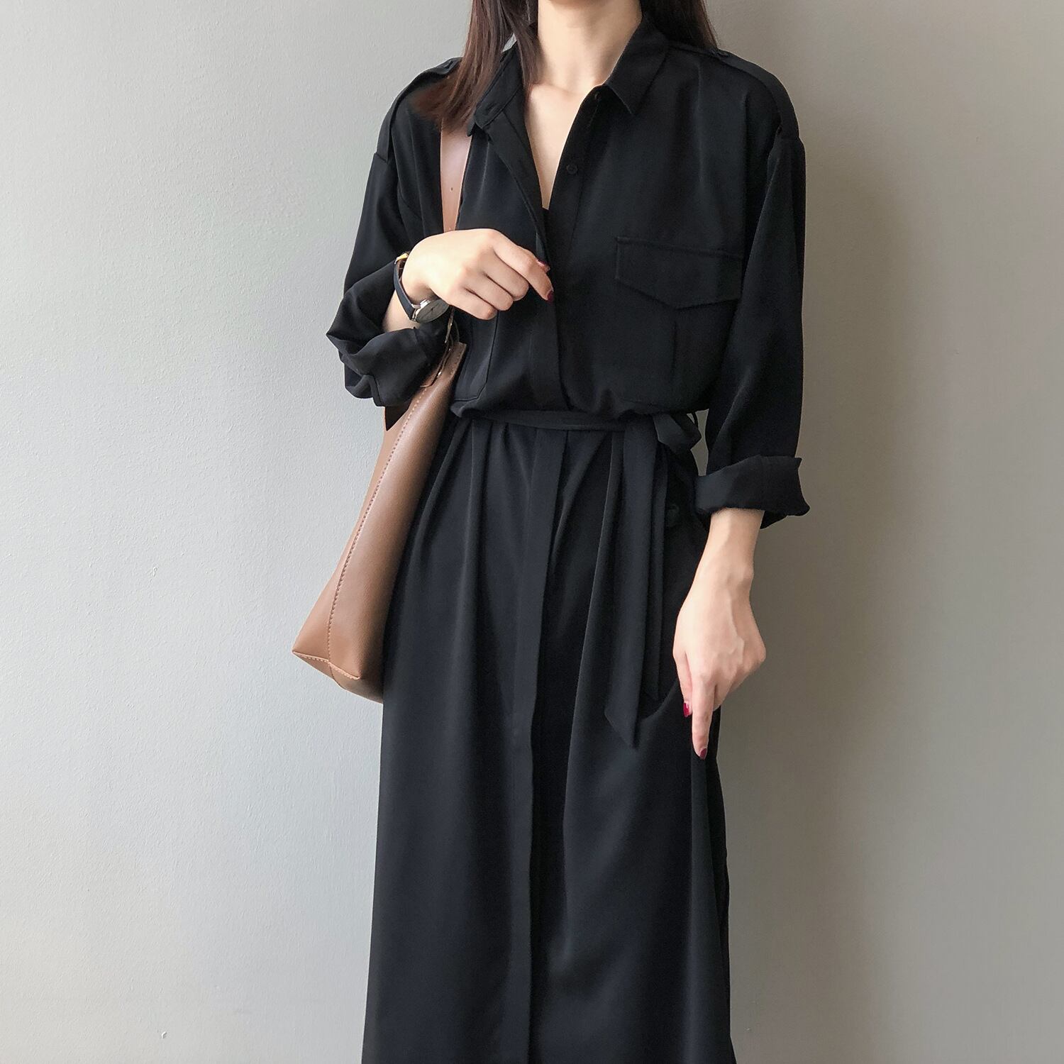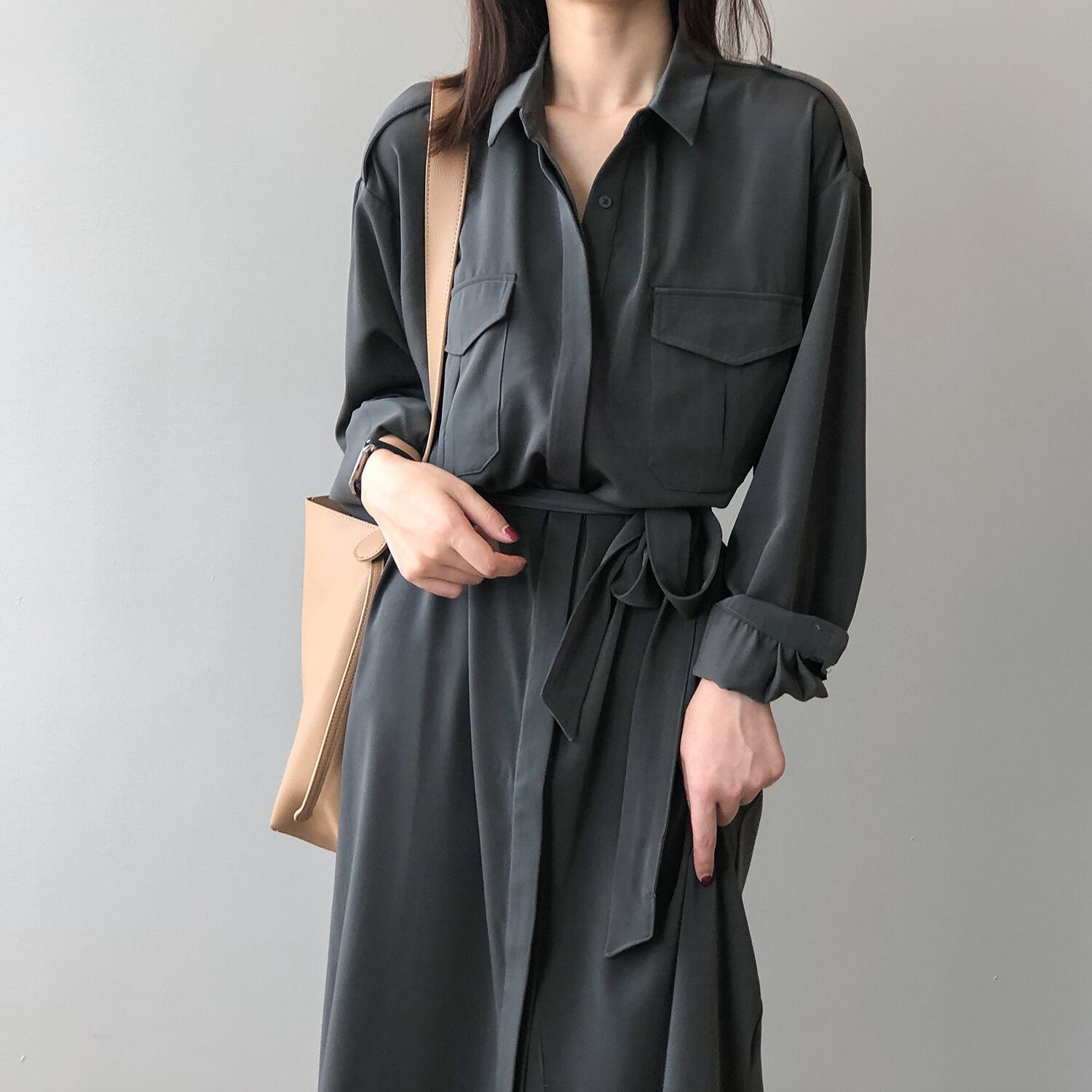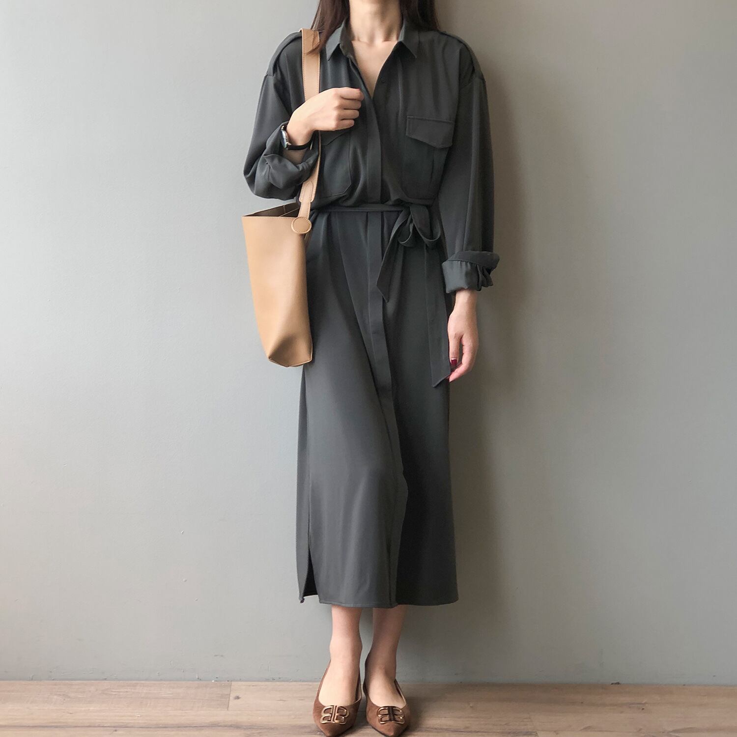 ワンピース レディース シャツワンピース ロング丈 ウエストリボン 襟付き ボタン 比翼仕立て フライフロント ポケット 長袖 ストレート サイドスリット 大人可愛い きれいめ シンプル カジュアル シック ベーシック 大人 上品 大人女子 おしゃれ お洒落 かっこいい クール エレガント フェミニン こなれ感 抜け感 存在感 M L ベージュ ブラック 黒 グレー 灰色 無地 春 秋 10代 20代 30代 40代 50代 60代 ビジネス オフィス OL 通勤 デート 女子会 お出かけ 旅行