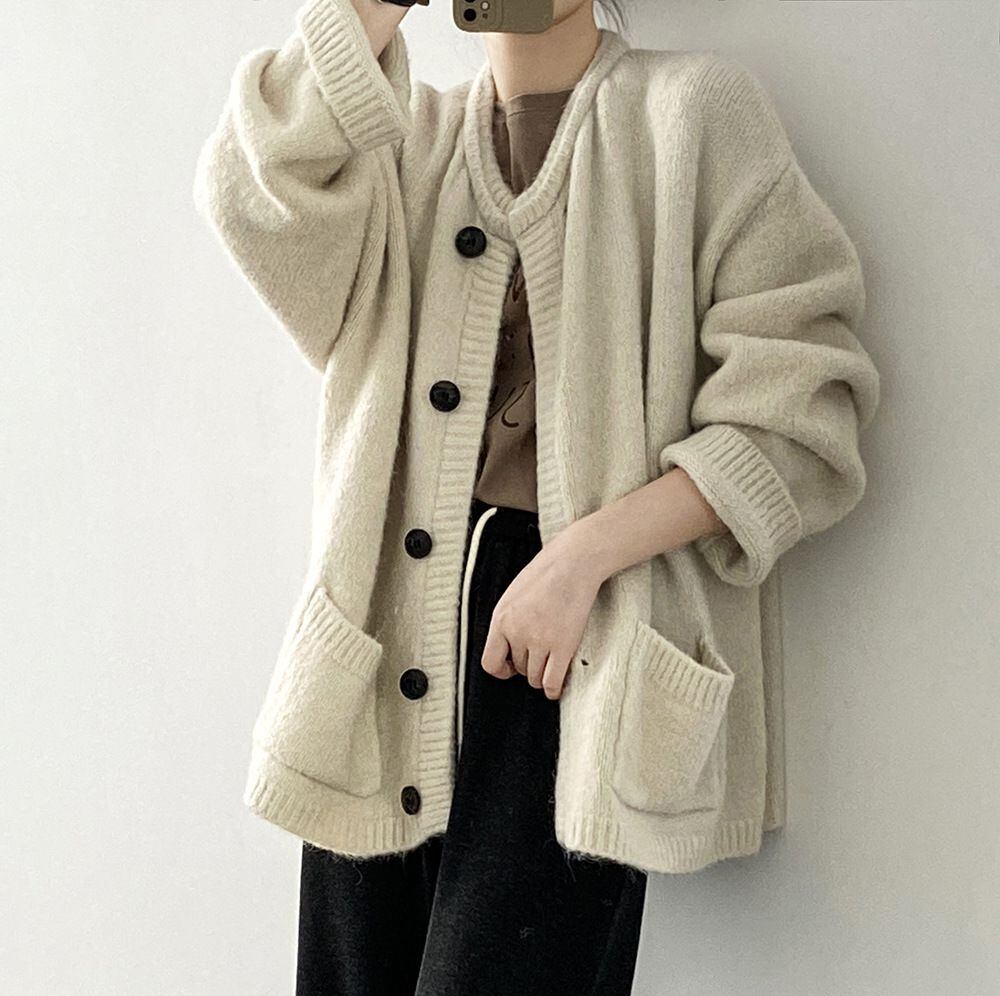 アウター レディース ニットカーディガン Uネック 羽織り ボタン 前開き 長袖 ポケット ドロップショルダー 大人可愛い カジュアル シンプル ベーシック おしゃれ お洒落 大人女子 かっこいい ラフ ルーズ ゆる ゆったり こなれ感 存在感 抜け感 ワンサイズ フリーサイズ 白 ホワイト ラベンダー 藤色 グレー 灰色 無地 春 秋 冬 10代 20代 30代 40代 50代 60代 通学 学生 ママ 公園デビュー 旅行 アウトドア 普段使い デイリー 韓国 オルチャン 体型カバー