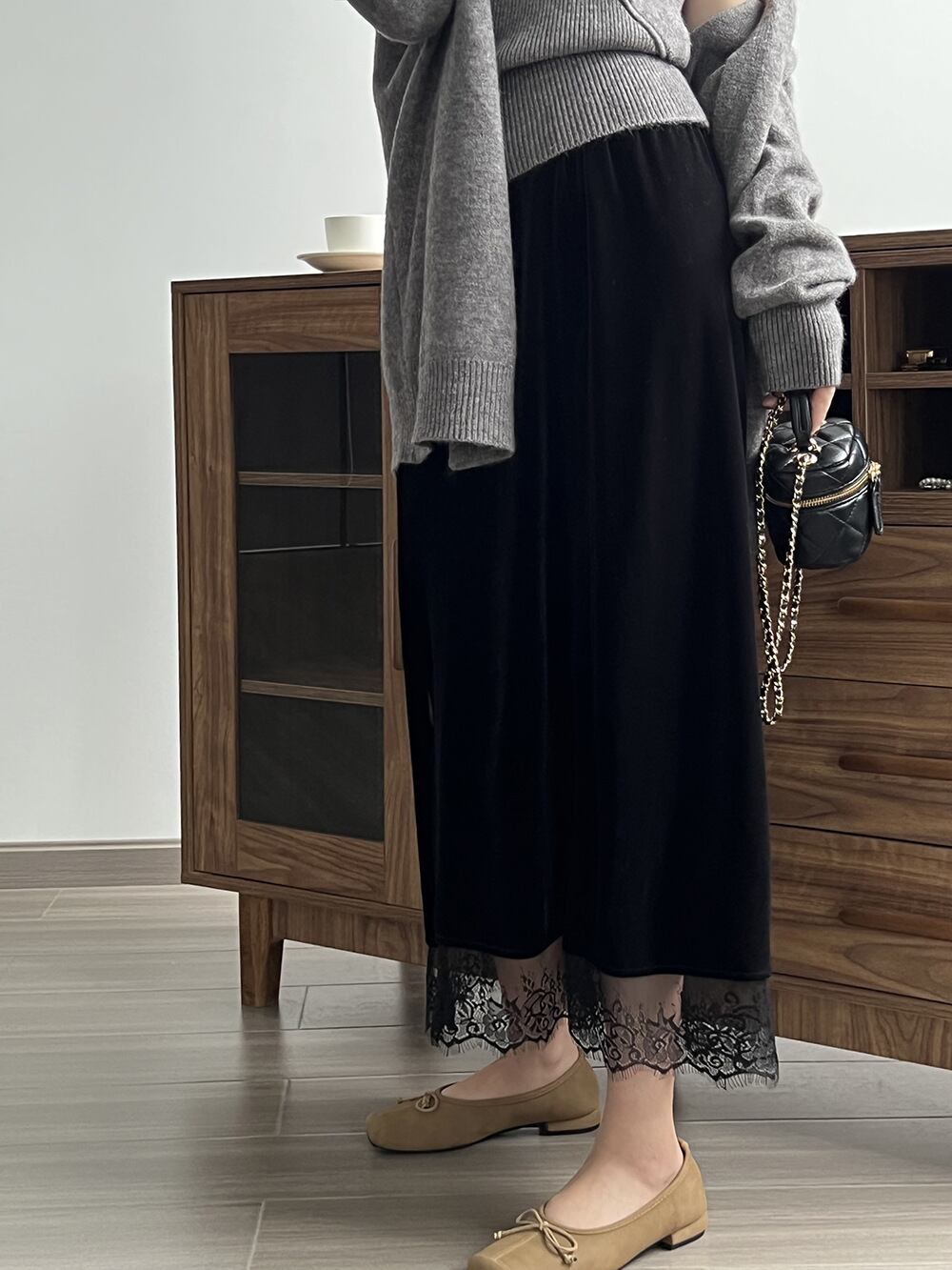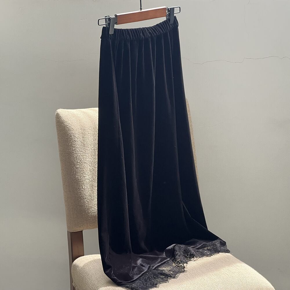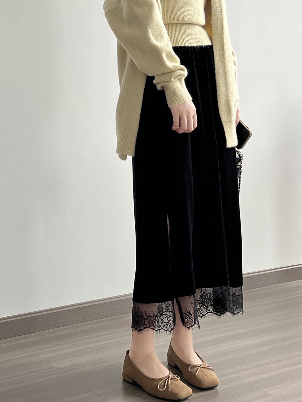 ボトムス レディース ペンシルスカート ナロースカート レース ロング丈 サイドスリット ベロア ベルベット 別珍 Iライン 大人可愛い きれいめ シンプル シック 大人 上品 おしゃれ お洒落 かっこいい 大人女子 フェミニン エレガント 存在感 抜け感 M L ブラック 黒 無地 秋 冬 10代 20代 30代 40代 50代 60代 オフィス ビジネス OL 通勤 デート お出かけ 女子会 休日 旅行 イベント モテ 脚長 美脚 普段使い デイリー 定番 プレゼント ギフト モテ 韓国 オルチャン