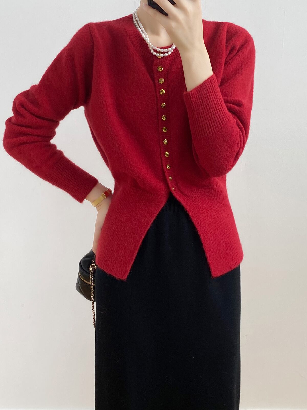 トップス レディース ニットカーディガン セーター 長袖 クルーネック ラウンドネック メタルボタン 金ボタン 前開き 大人可愛い きれいめ シンプル カジュアル 上品 おしゃれ お洒落 かっこいい レトロ 大人女子 こなれ感 抜け感 存在感 ワンサイズ フリーサイズ アイボリー 白 ブラック 黒 レッド 赤 無地 春 秋 冬 10代 20代 30代 40代 50代 60代 オフィス ビジネス OL 通勤 通学 学生 ママ 公園デビュー 旅行 女子会 お出かけ 普段使い デイリー 韓国 オルチャン
