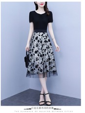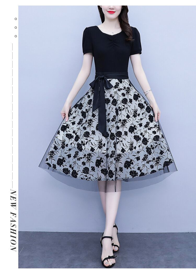 ワンピース レディース 膝下丈 膝丈 半袖 ウエストリボン フレアスカート Aライン ベール ヴェール 透け感 ドッキング 切り替え 大人可愛い きれいめ シック 上品 大人女子 おしゃれ お洒落 エレガント フェミニン 存在感 M L XL 2XL 3XL 4XL 5XL 大きいサイズ 黒 ブラック 花柄 フラワー 春 夏 秋 10代 20代 30代 40代 50代 お出かけ 女子会 デート パーティー 結婚式 披露宴 二次会 旅行 イベント 定番 モテ 韓国 オルチャン 美脚 脚長