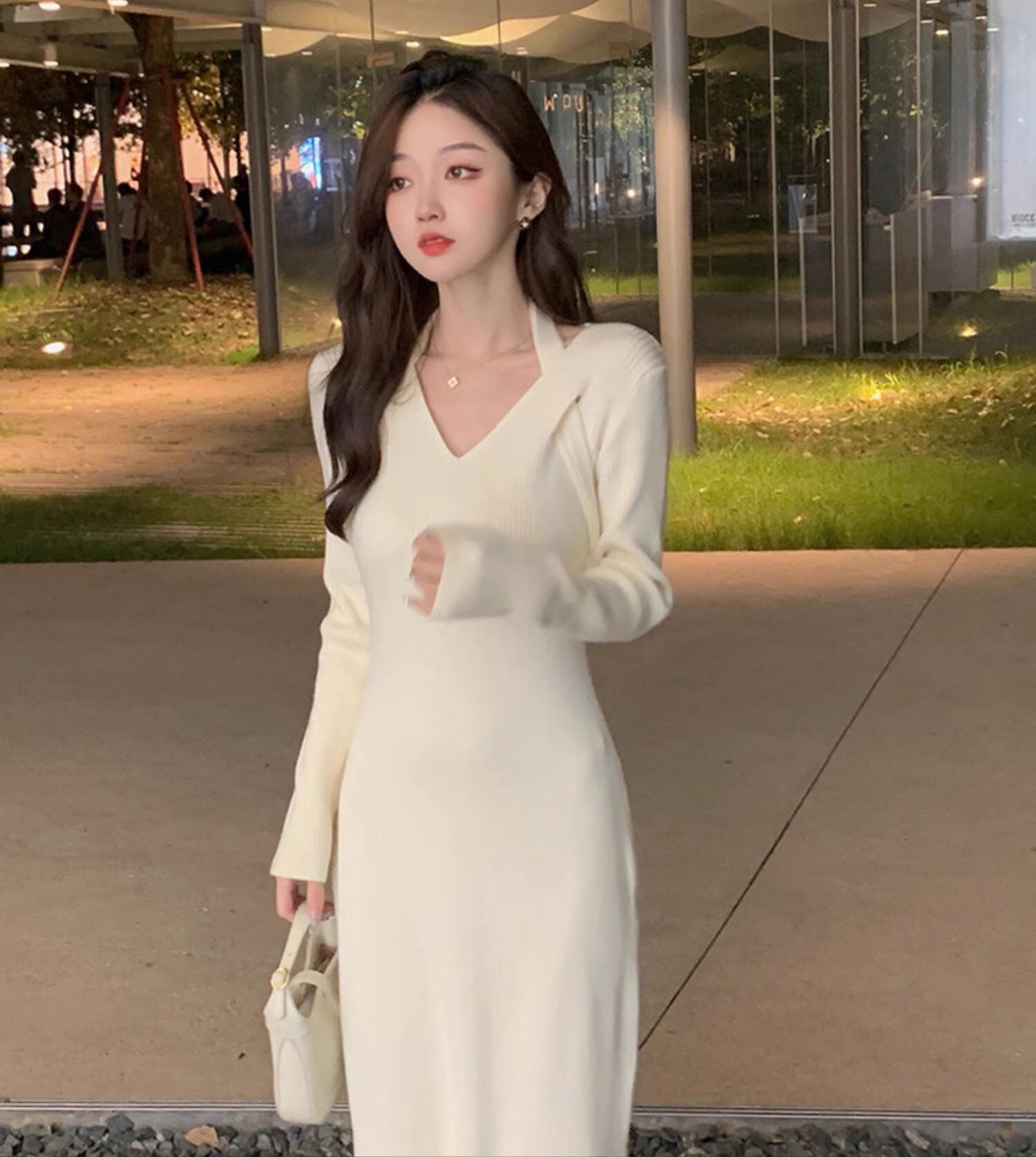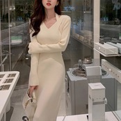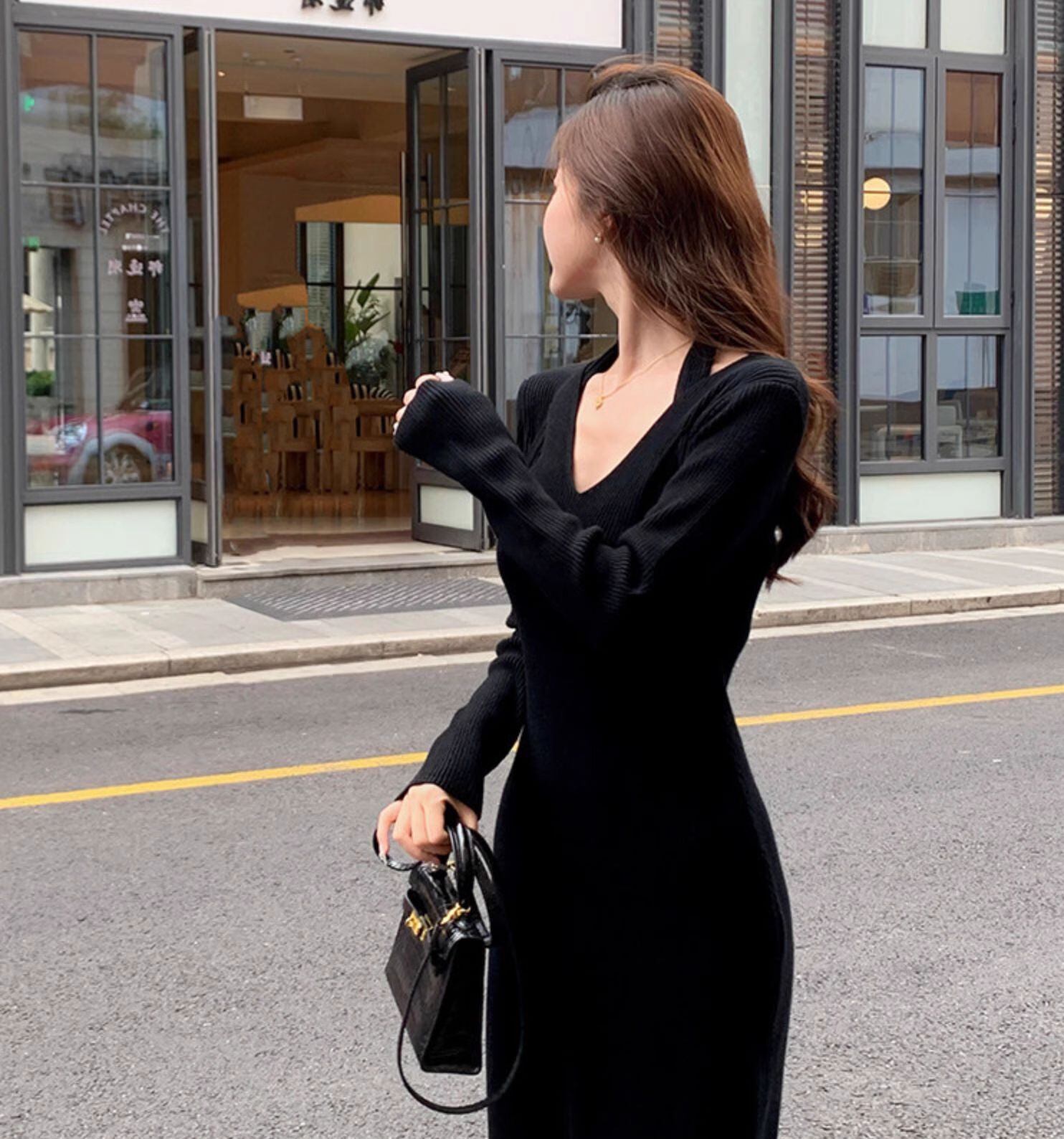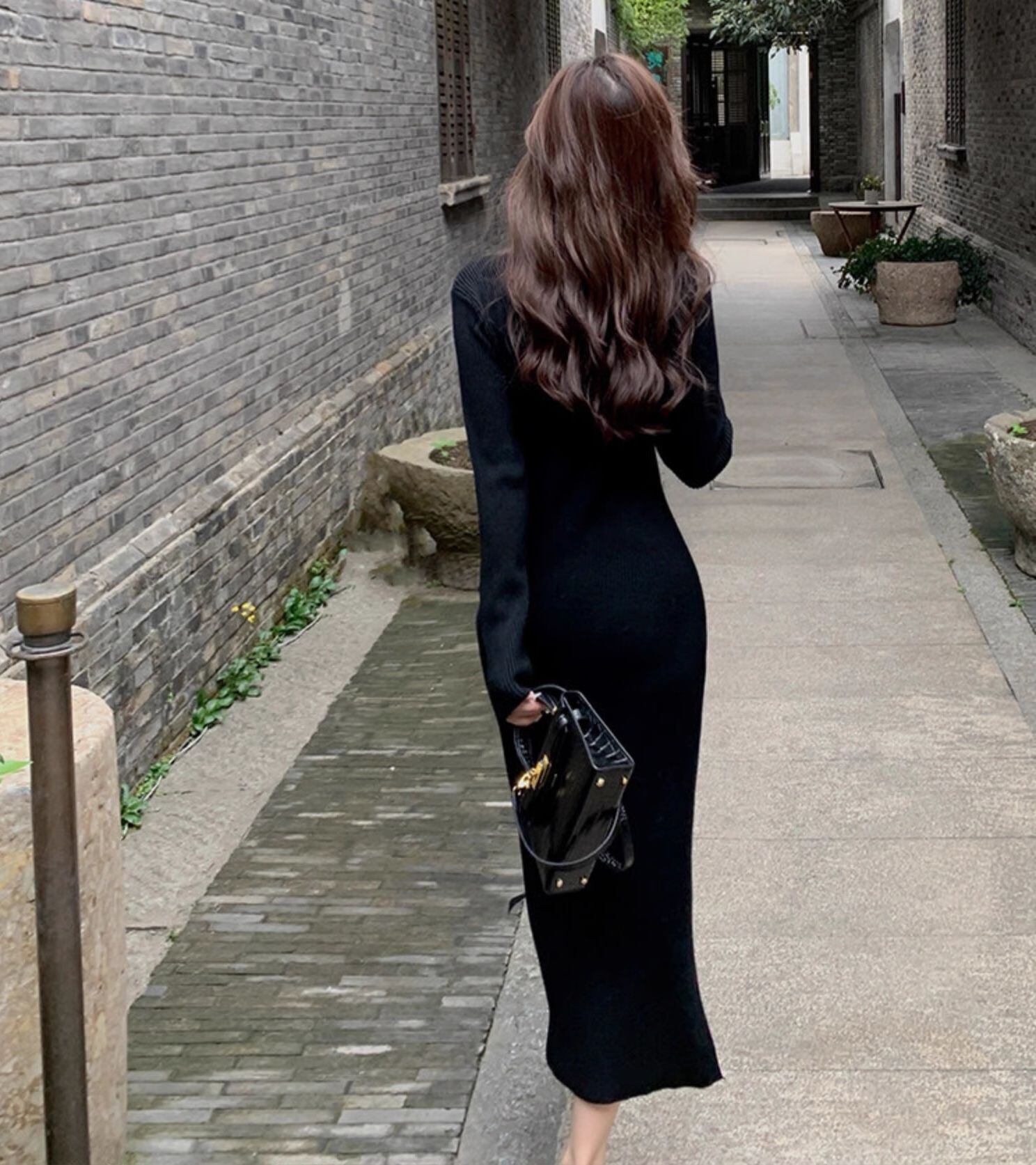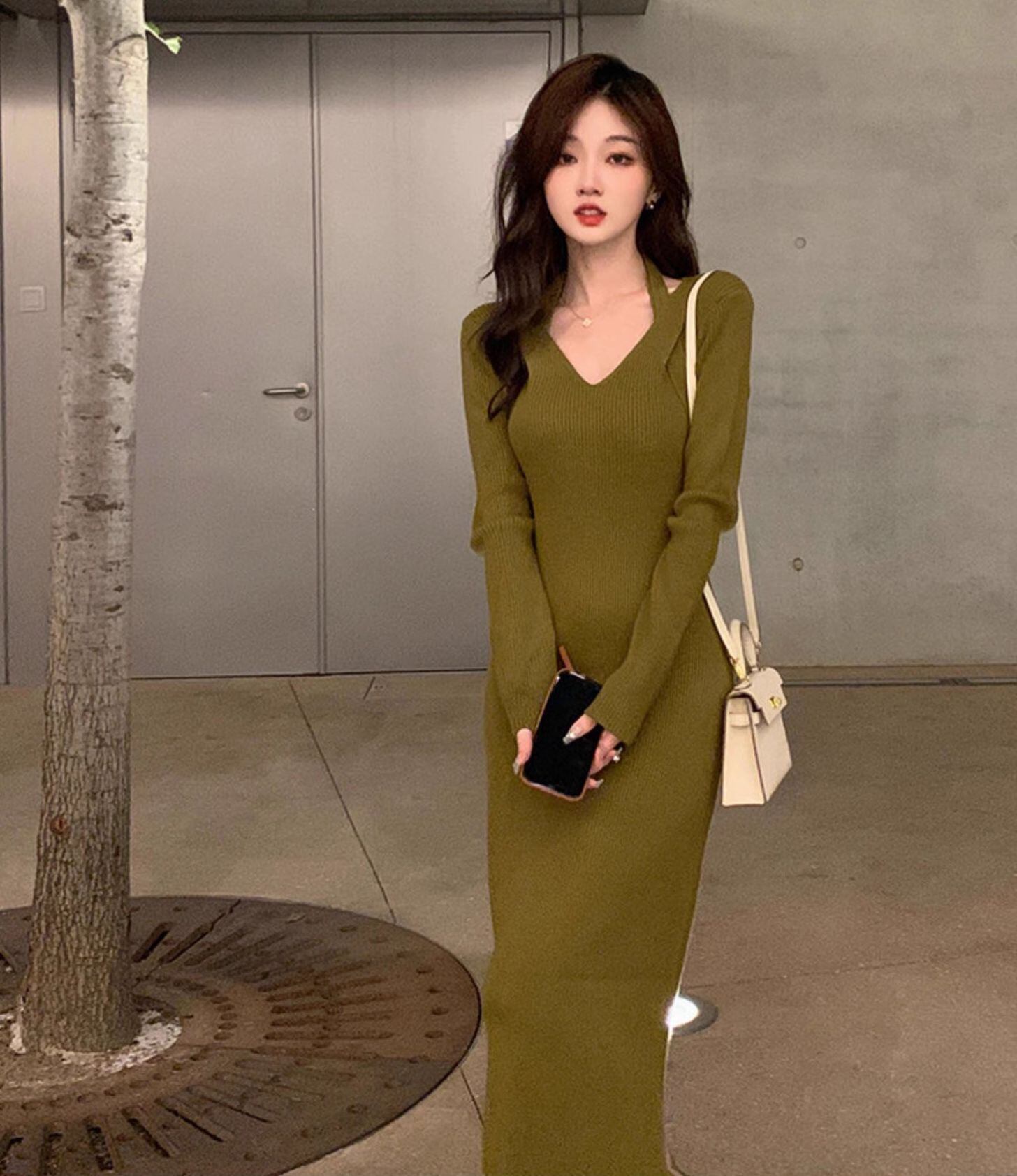 ワンピース レディース リブニットワンピース ロング丈 長袖 萌袖 Vネック ホルターネック Iライン マーメイドライン 大人可愛い きれいめ シンプル シック 大人 上品 おしゃれ お洒落 大人女子 かっこいい クール セクシー エレガント フェミニン 存在感 こなれ感 抜け感 S M L XL 2XL 大きいサイズ 黒 ブラック 白 アイボリー ピスタチオグリーン 緑 無地 春 秋 冬 10代 20代 30代 40代 50代 デート お出かけ 女子会 休日 旅行 モテ