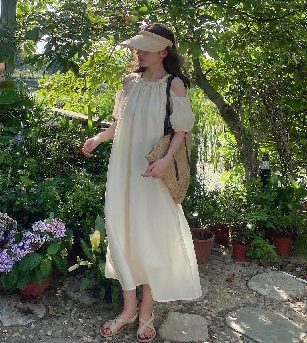 ワンピース レディース ロングワンピース ホルターネック オフショルダー 五分袖 5分袖 半袖 ミモレ丈 ロング丈 Aライン シフォン 透け感 肩見せ ギャザー 大人可愛い シンプル カジュアル 大人女子 おしゃれ お洒落 ガーリー フェミニン こなれ感 抜け感 存在感 ワンサイズ フリーサイズ アイボリー 白 ベージュ 無地 春 夏 10代 20代 30代 40代 50代 お出かけ 女子会 デート 旅行 イベント リゾート 海 プール モテ 韓国 オルチャン デイリー 普段使い 美脚 脚長 楽ちん