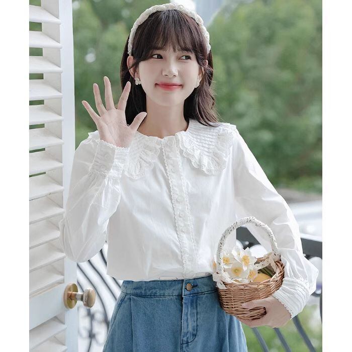 トップス レディース シャツブラウス フリル襟 ビッグカラー 長袖 ボタン 前開き 大人可愛い シンプル ナチュラル 大人女子 上品 おしゃれ お洒落 キュート ガーリー フェミニン 存在感 抜け感 こなれ感 ワンサイズ フリーサイズ ホワイト 白 無地 春 秋 10代 20代 30代 40代 50代 60代 ビジネス オフィス OL 通勤 通学 学生 ママ お出かけ 女子会 デート 旅行 普段使い デイリー オルチャン 韓国 重ね着 着回し 10代 20代 30代 40代 50代 60代