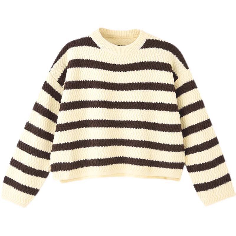 トップス レディース ニットセーター プルオーバー ラウンドネック クルーネック 長袖 ドロップショルダー 大人可愛い シンプル カジュアル ベーシック ナチュラル おしゃれ お洒落 大人女子 上品 ラフ こなれ感 抜け感 存在感 ルーズ ゆったり ゆる ワンサイズ グレー 灰色 ブラウン 茶色 ブラック 黒 ボーダー柄 横縞柄 春 秋 冬 10代 20代 30代 40代 50代 60代 通勤 OL 通学 学生 ママ 公園デビュー アウトドア お出かけ 女子会 旅行 休日 普段使い デイリー 定番