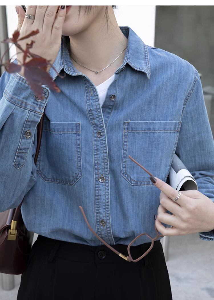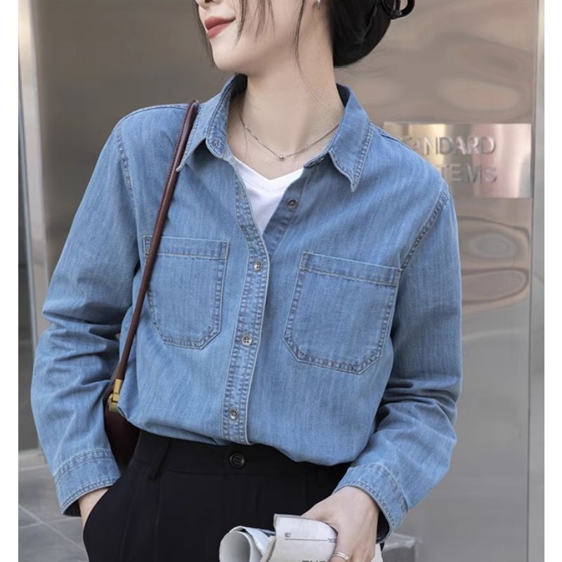 トップス アウター レディース デニムシャツ ブラウス 羽織り ジャケット 長袖 ボタン 襟付き ポケット 前開き 大人可愛い シンプル カジュアル ベーシック おしゃれ お洒落 かっこいい 大人女子 メンズライク ラフ こなれ感 存在感 抜け感 S M L XL ブルー 青 無地 春 秋 10代 20代 30代 40代 50代 60代 お出かけ 学生 通学 ママ 公園デビュー アウトドア 休日 旅行 普段使い デイリー 韓国 オルチャン 定番 楽ちん 重ね着 着回し