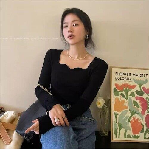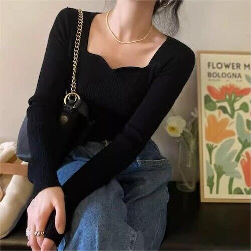トップス レディース ニットセーター プルオーバー ハートネック スクエアネック 長袖 スリム 大人可愛い きれいめ シンプル シック フィット 上品 おしゃれ お洒落 かっこいい クール セクシー 大人女子 こなれ感 抜け感 存在感 ワンサイズ フリーサイズ 黒 ブラック 無地 春 秋 冬 10代 20代 30代 40代 50代 オフィス ビジネス OL 通勤 通学 学生 ママ デート お出かけ 女子会 旅行 休日 普段使い デイリー あったか 暖かい 定番 韓国 オルチャン