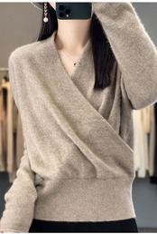 4色カラバリ、カシュクールウールカシミアニットセーター。