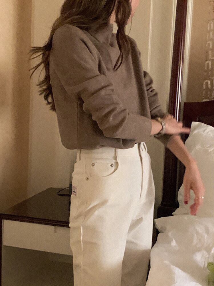 8色カラバリ、モックネック(ハイネック)ニットセーター。