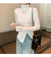 4色カラバリ、ハンカチヘムタートルネックニットセーター。